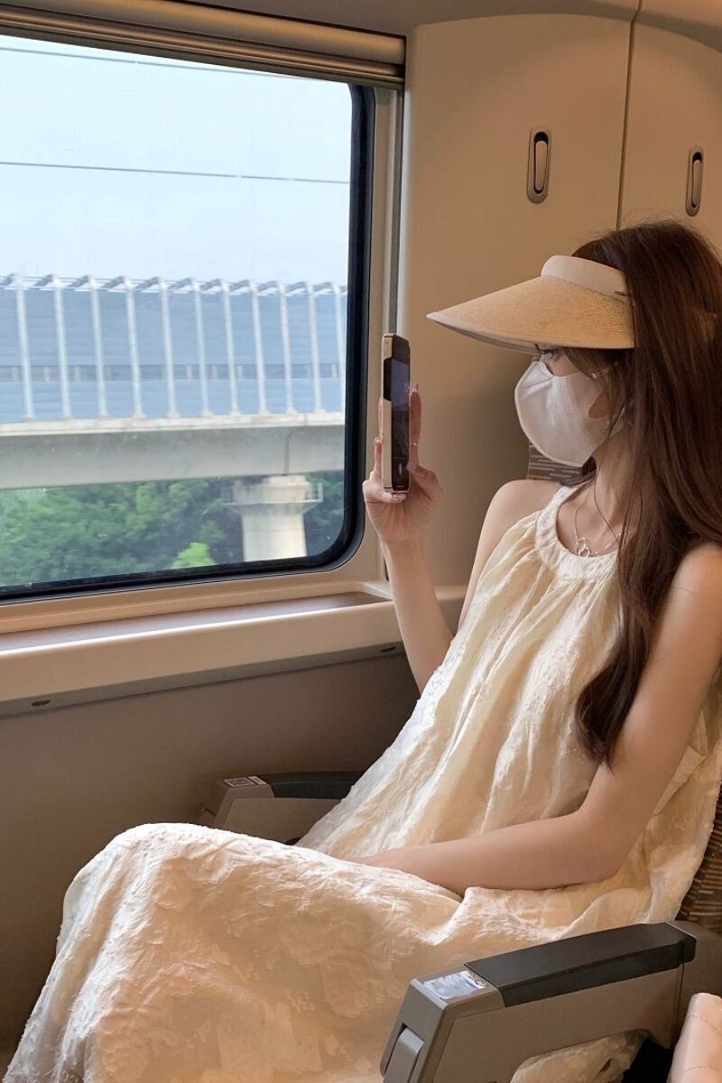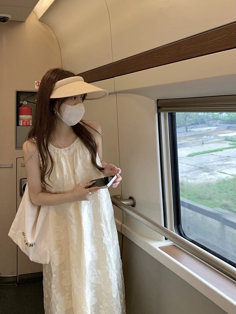 アプリコットノースリーブドレスの女性の2023夏新しいデザインセンスニッチ休暇緩い小人スリムスカート サマー 夏物 8571648388332076