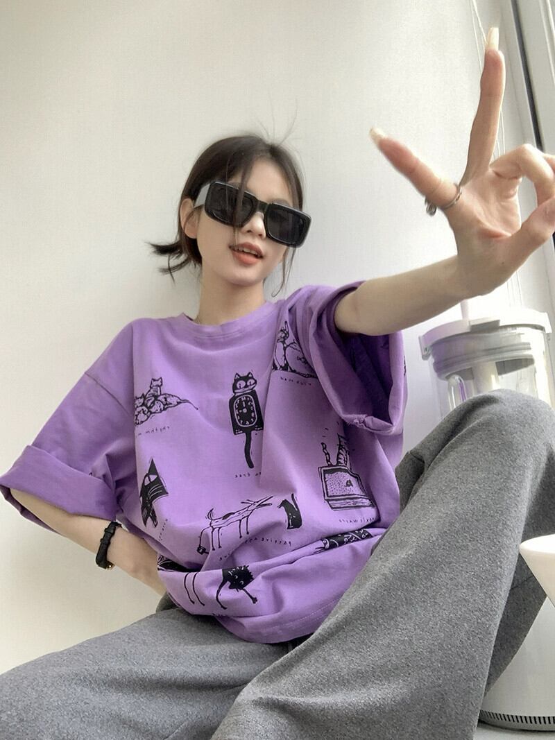 色:グレーオールオーバーTシャツ,パープルオールオーバーTシャツ
