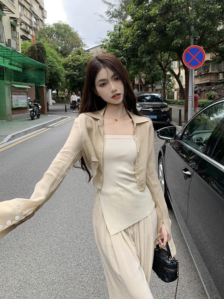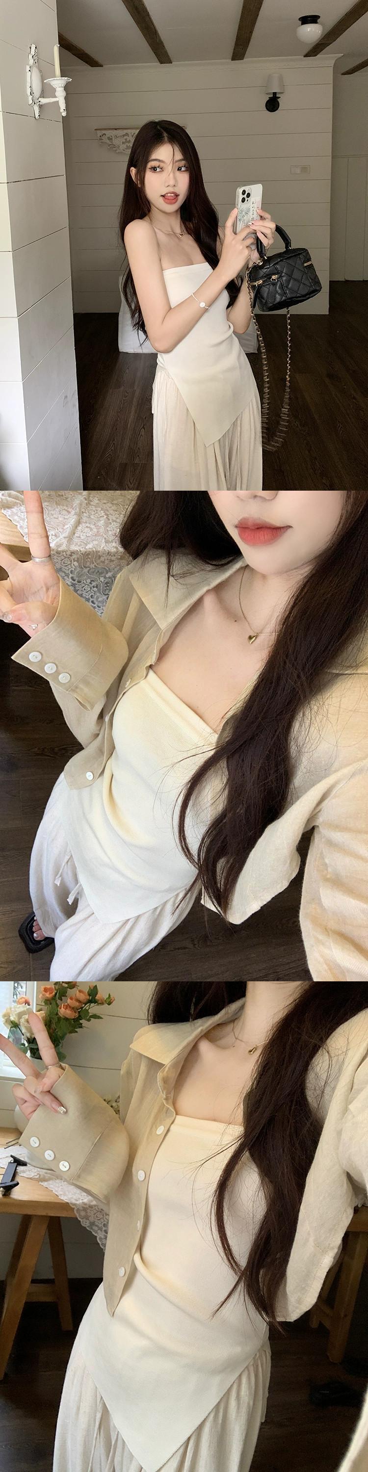 色:カメリアアプリコットシャツ,アプリコットホワイトのチューブトップ,ディアボロパンツ