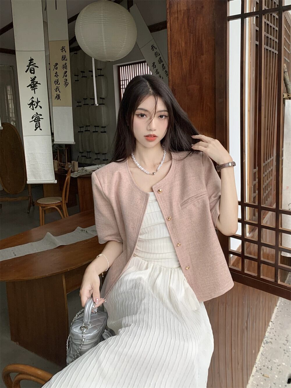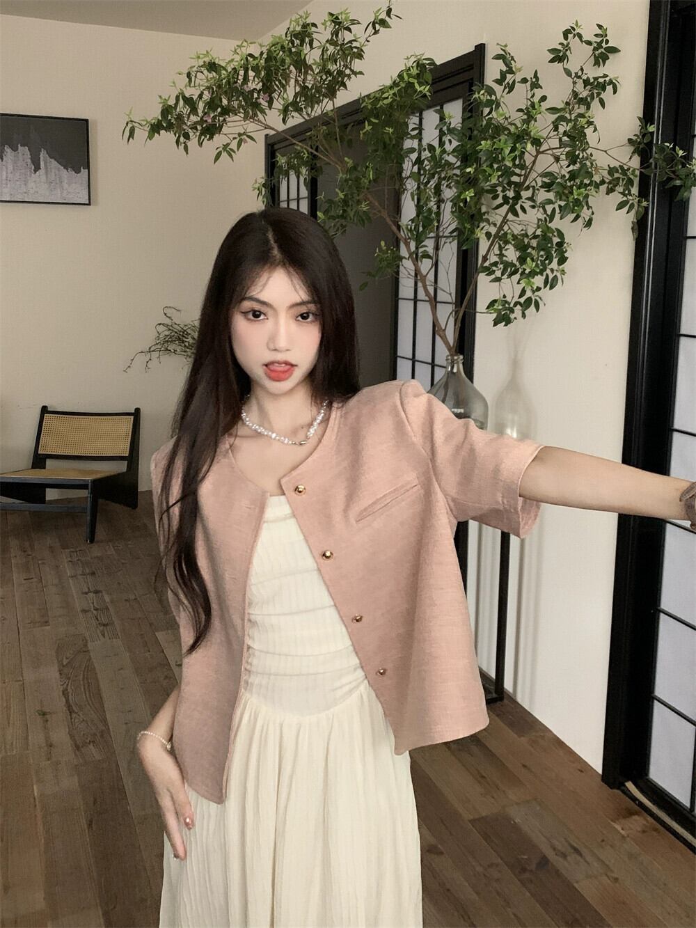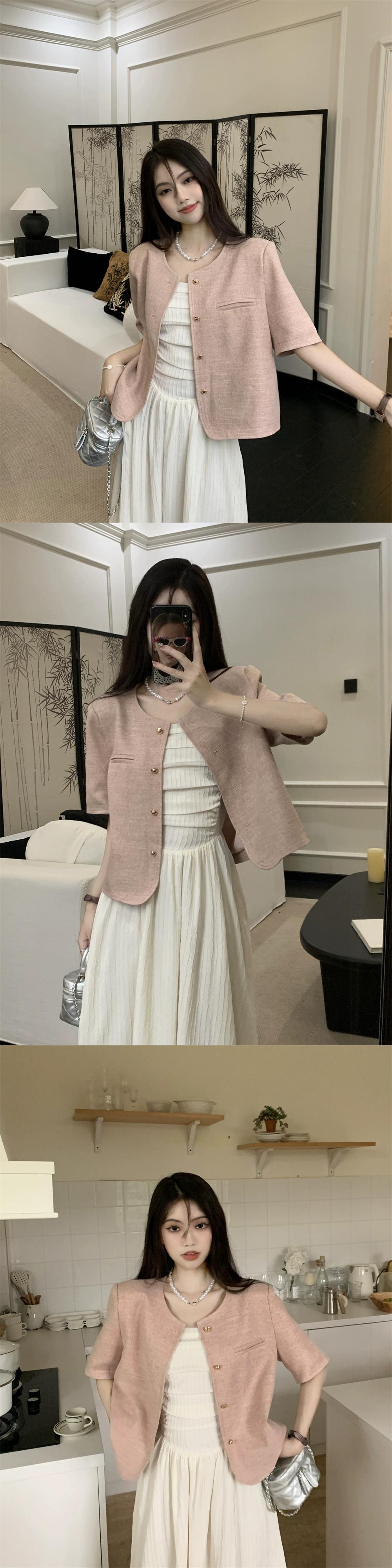 ピンクの小さな香りの風半袖スーツジャケット女性のデザインセンスニッチ 2023 春の新しいハイエンド揚げストリートスーツ スプリング 春物 8571694113026336