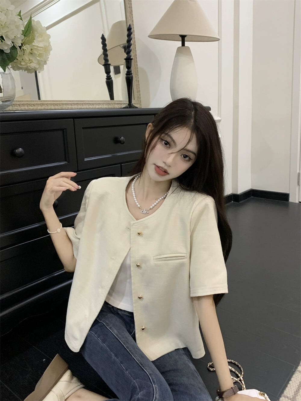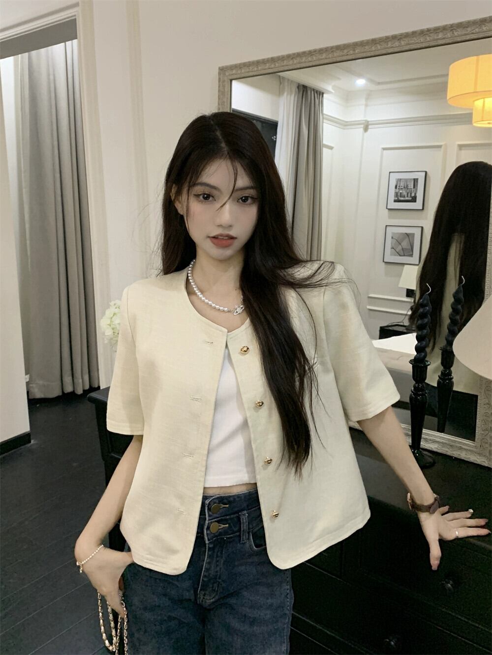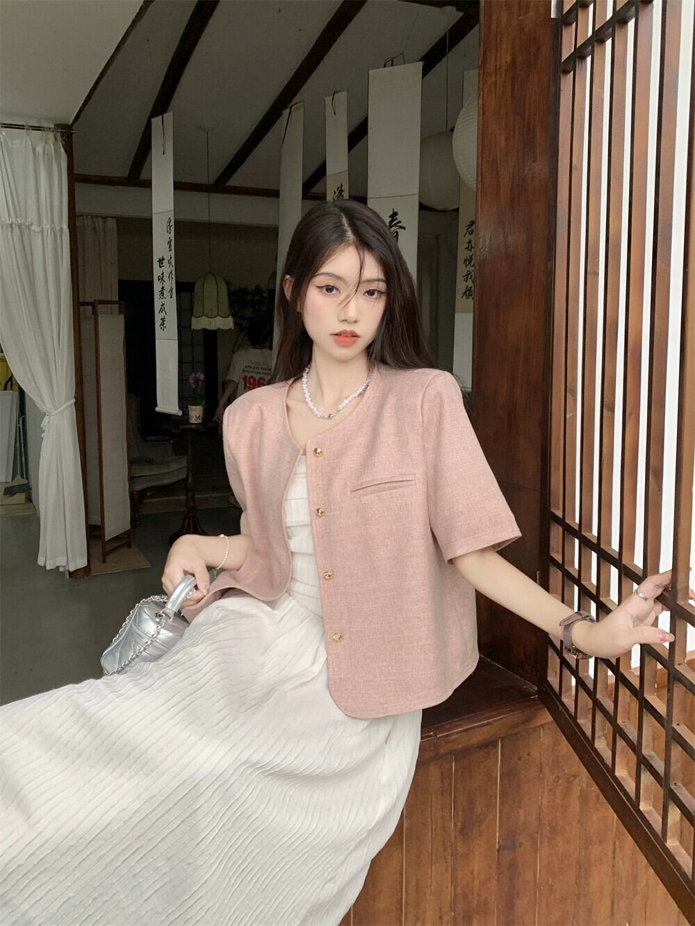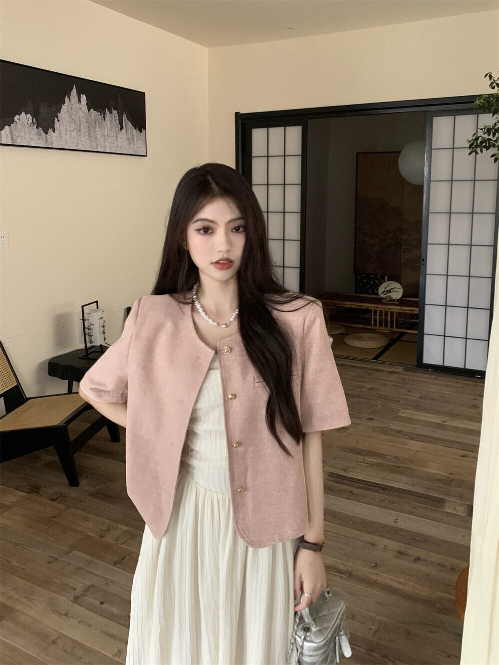 ピンクの小さな香りの風半袖スーツジャケット女性のデザインセンスニッチ 2023 春の新しいハイエンド揚げストリートスーツ スプリング 春物 8571694113026336