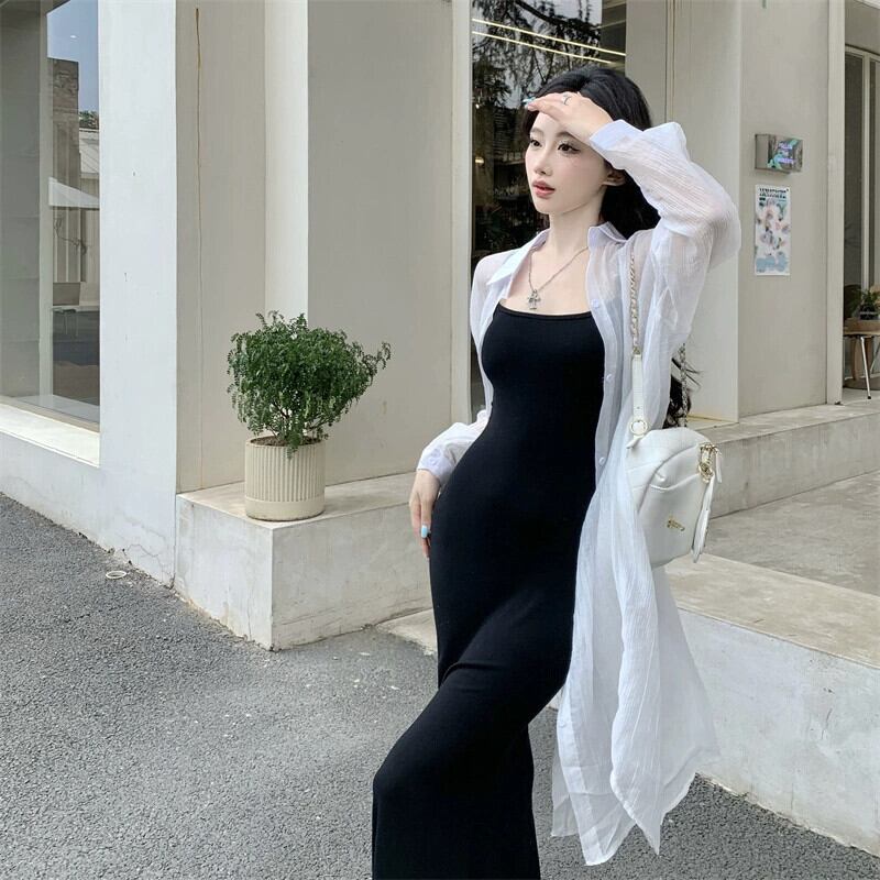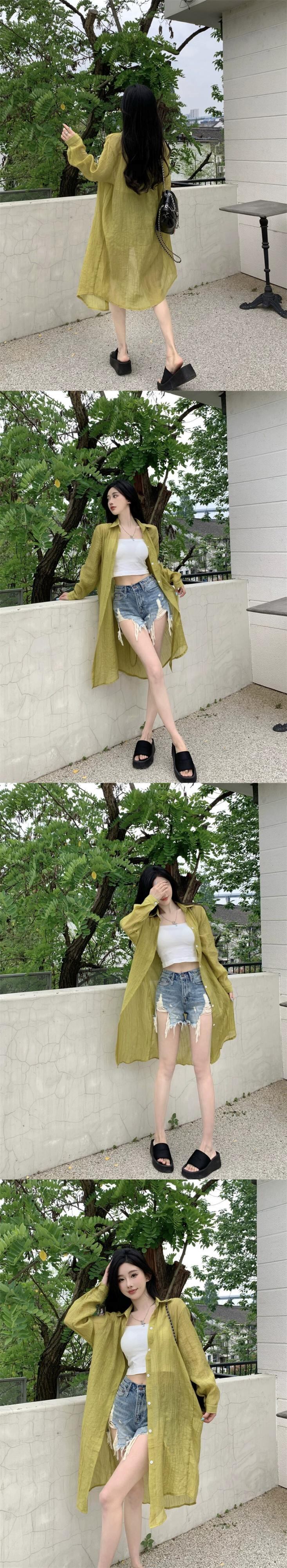ホワイトカジュアル日焼け止めシャツコートレディース春薄セクションデザインセンスニッチフレンチルーズスリム長袖トップ ロング スプリング 春物 8571646828096388