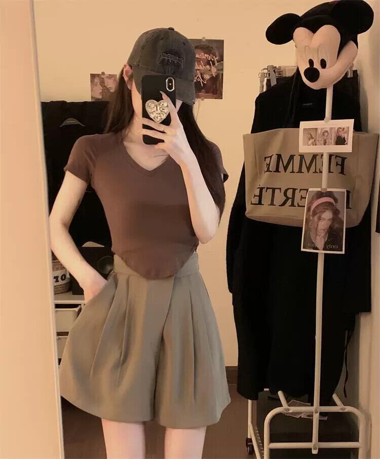 不規則なベルクロスーツショーツレディース夏デザインセンスニッチハイウエストゆったりAラインカジュアルワイドレッグパンツ ハイウェスト サマー 夏物 ブルマー 8571623600389456