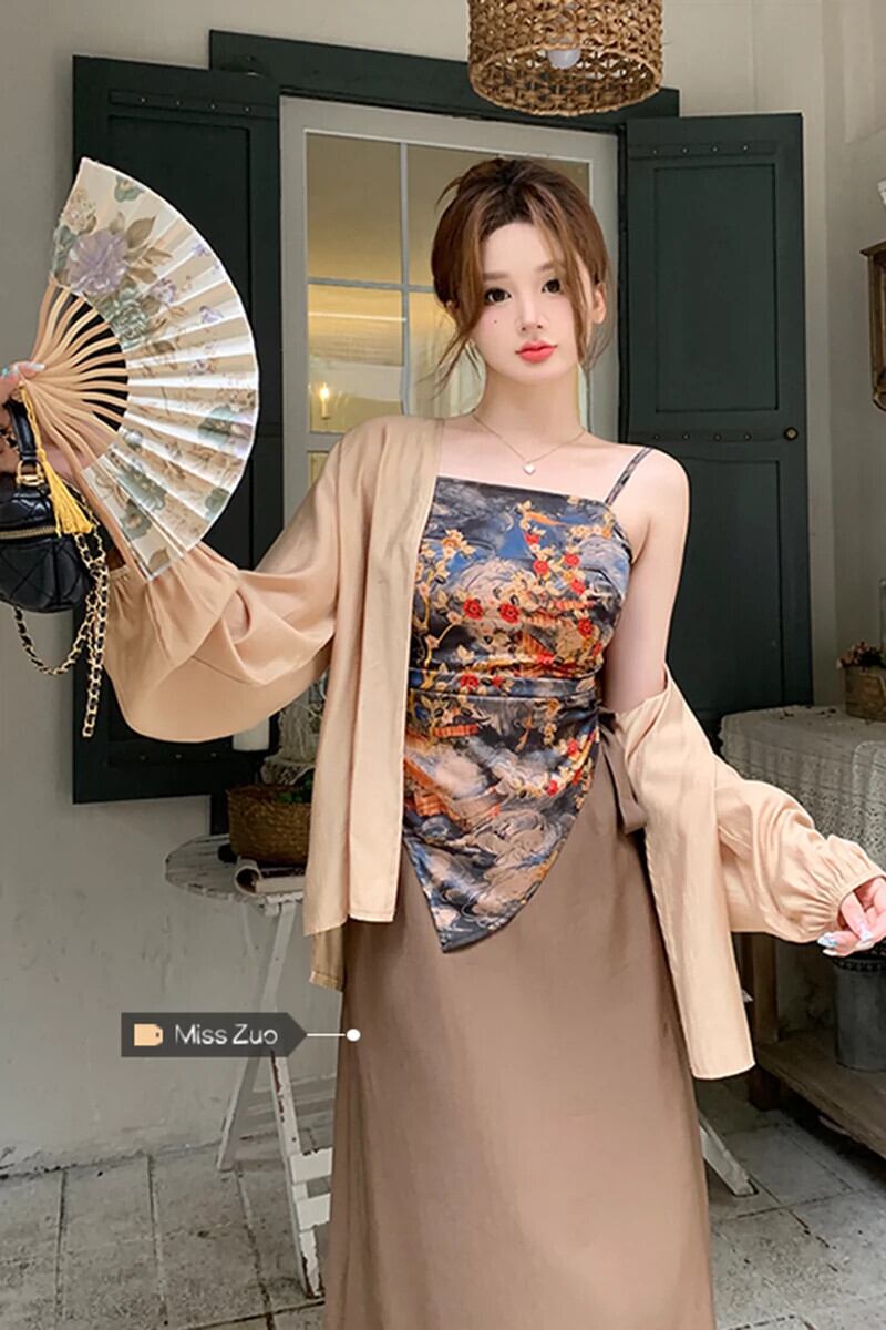 中国風キャミソールレディースインナーウェア夏アウターデザインセンスニッチユニークユニークシック不規則なボトムストップ サマー 夏物 8571628201687992
