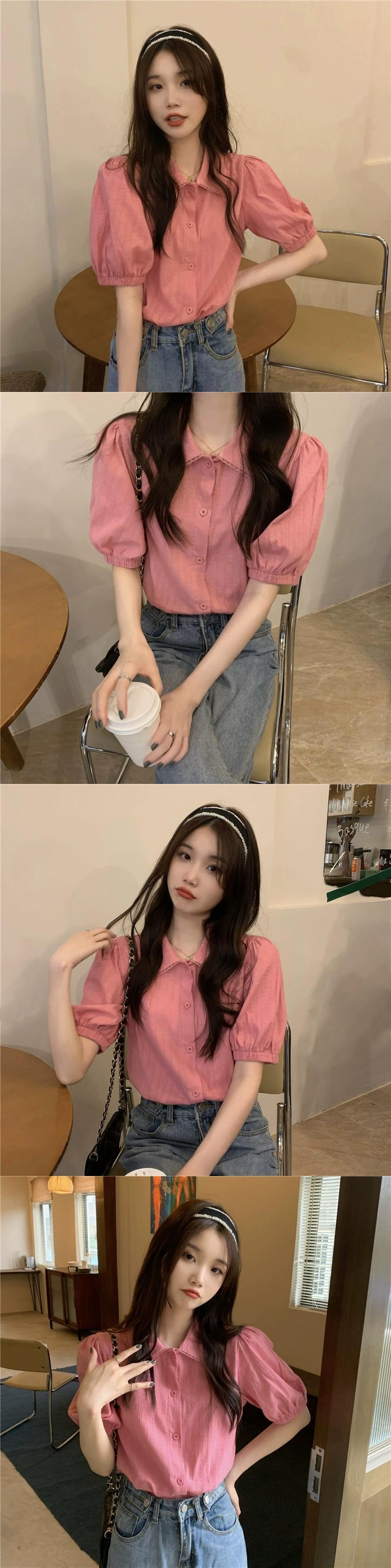 オフホワイトドールカラー半袖シャツレディース2023年夏新作フランスの気質のハイエンドでシックで美しいトップス サマー 夏物 8571669985273724