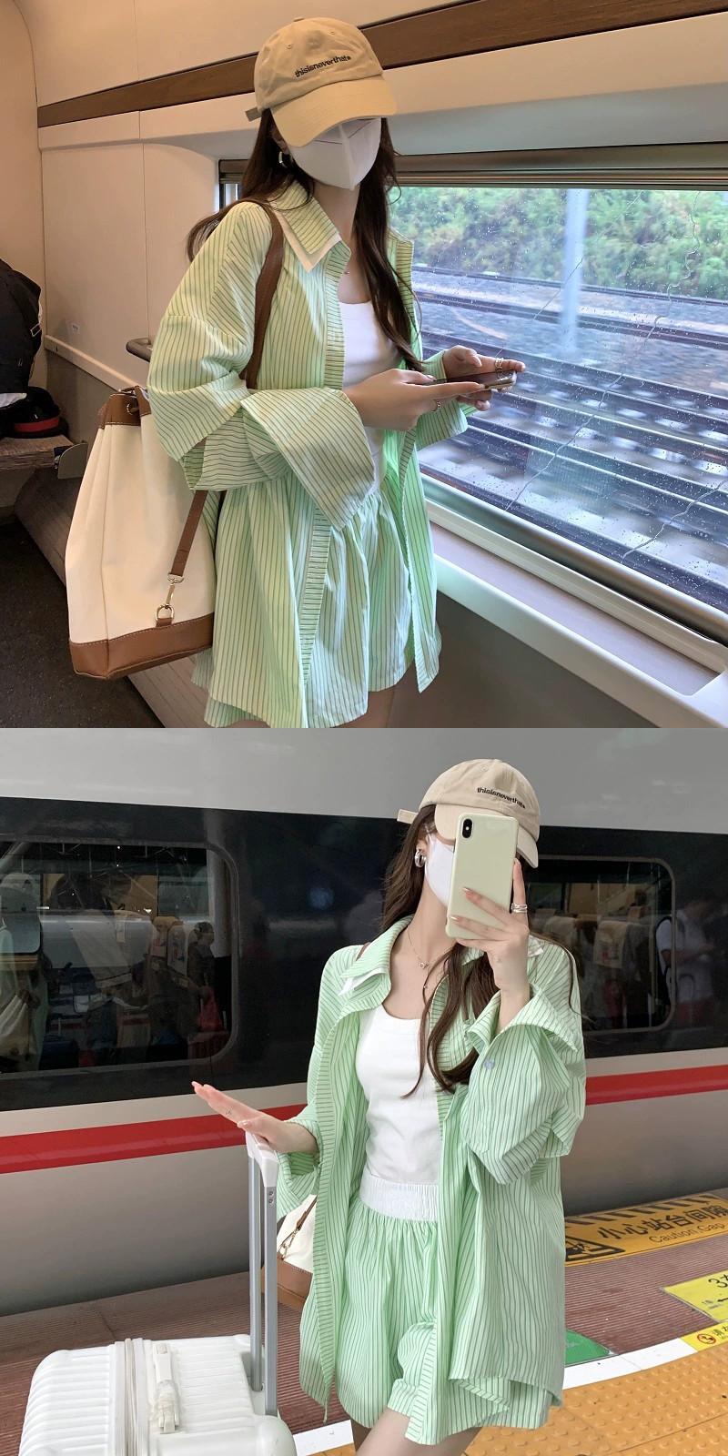 日焼け止めストライプシャツ女性の夏のデザインセンスニッチ長袖シャツ 2023 新しいスタイルシックシックトップ ロング サマー 夏物 8571666588117291