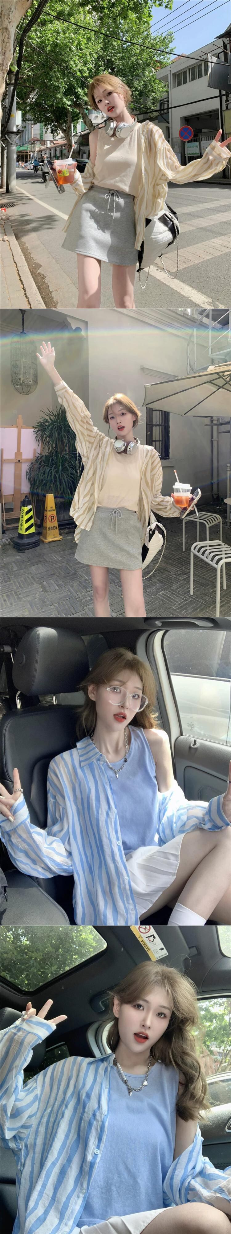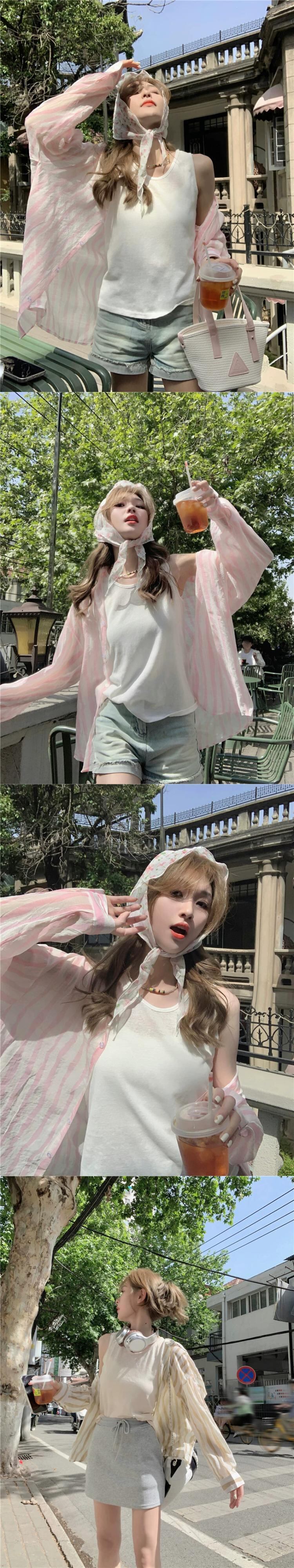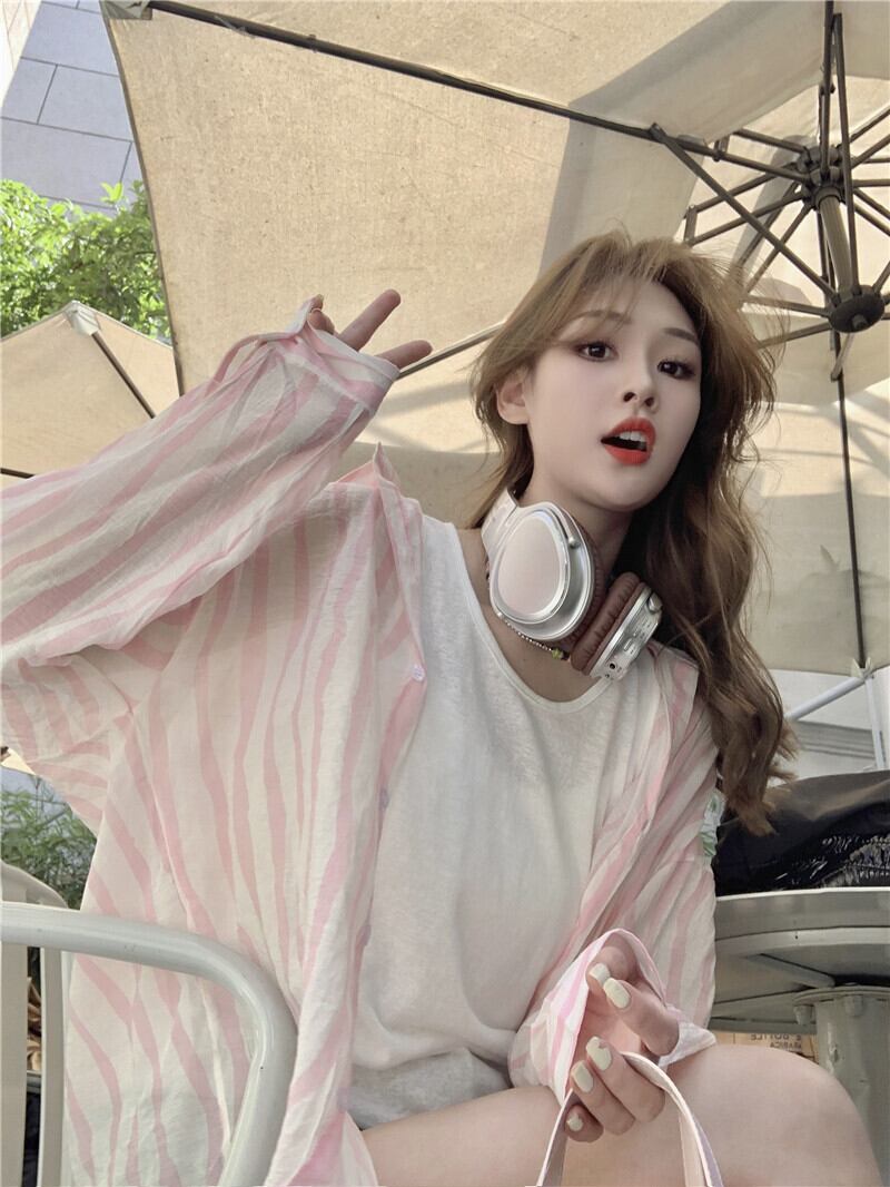 ストライプ日焼け止めシャツジャケットレディース春薄セクションデザインセンスニッチルーズカジュアル気質シックな長袖トップ ロング スプリング 春物 8571645607814610