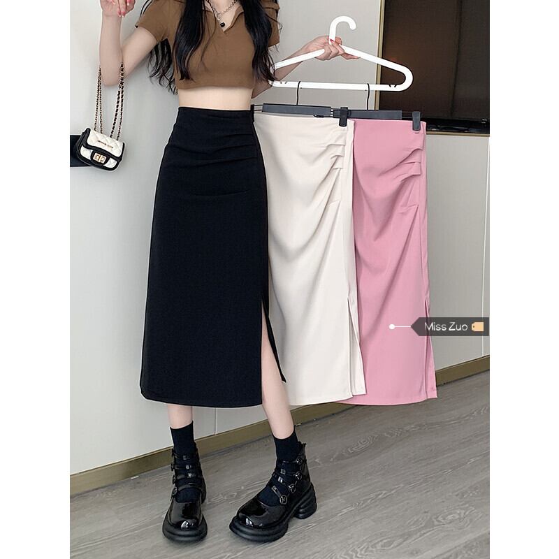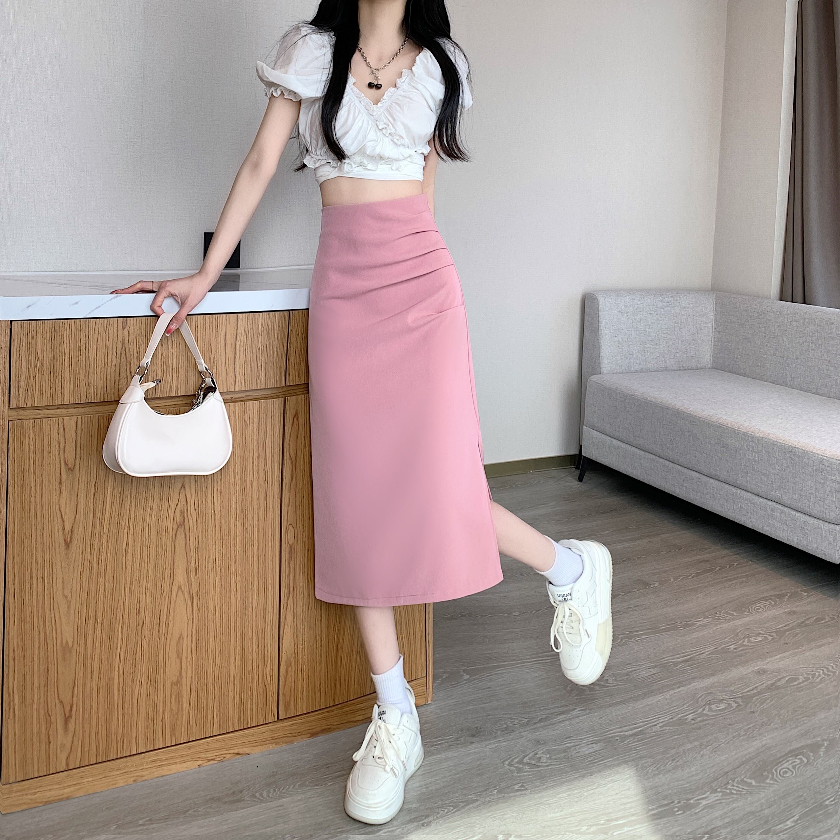 黒プリーツスカート レディース ハイウエスト スリット ワンステップスカート 夏デザイン感 Aラインスカート ミモレ丈 バッグヒップスカート ハイウェスト ブラック サマー 夏物 8571660809249625
