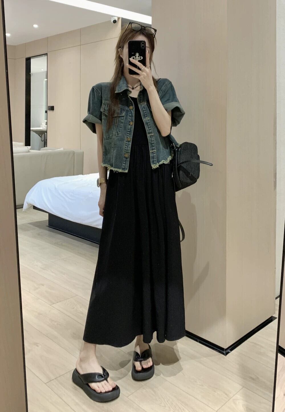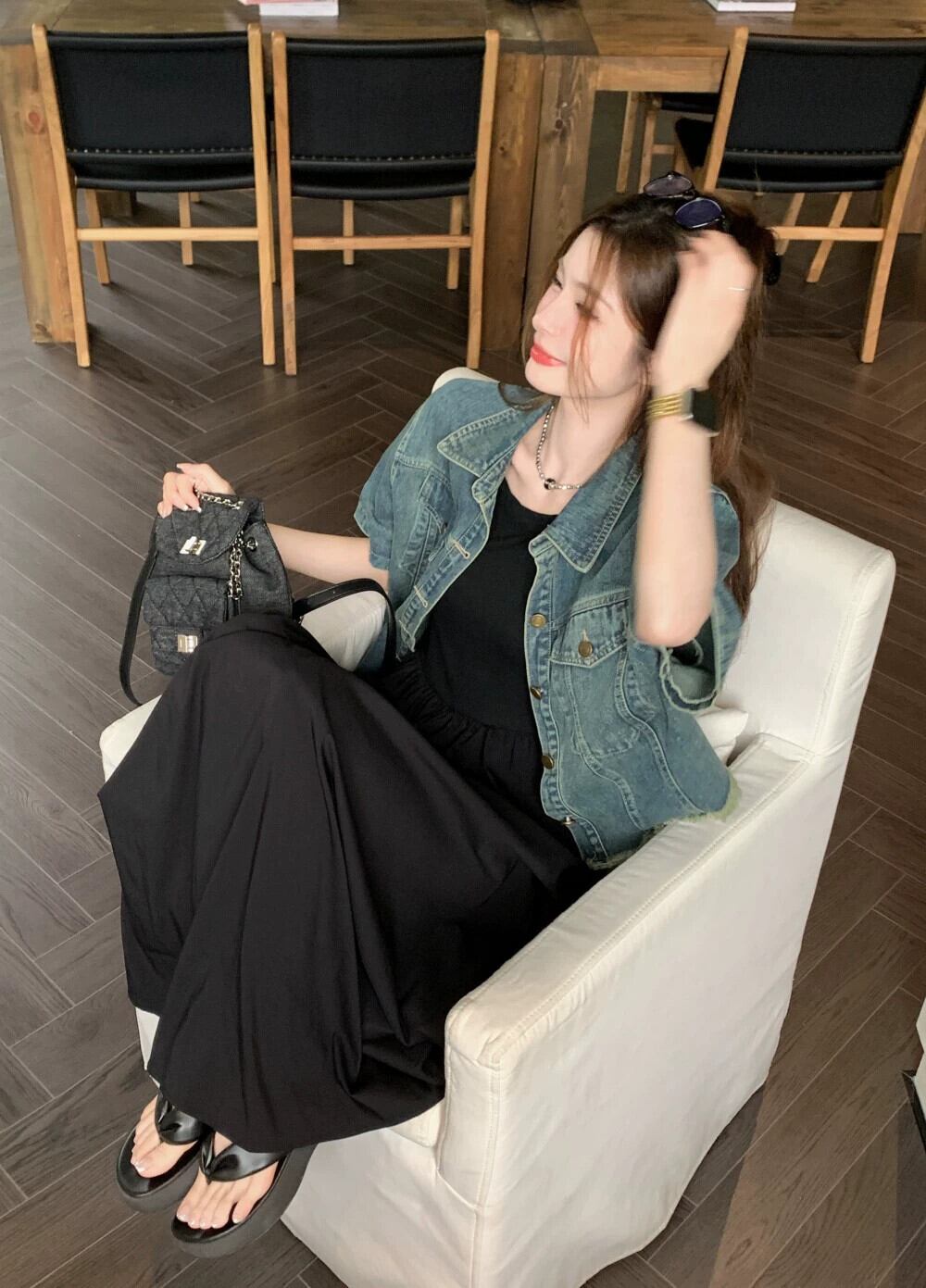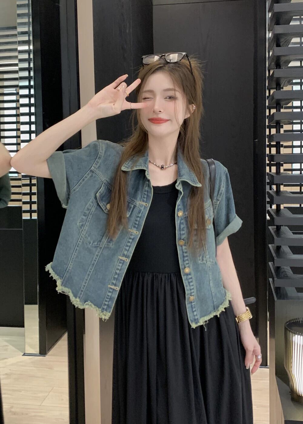 デニム半袖ジャケット女性の夏オールマッチ 2023 新しい香港風味レトロシックなドレスショートトップ サマー 夏物 8571680821445986