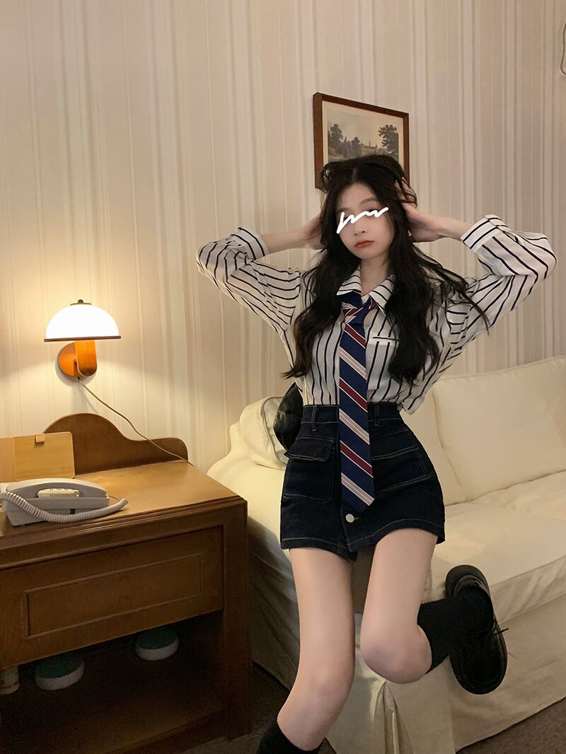 ダークブルーデニムスカートの女性の夏の防光スカート 2023 新しいハイウエスト A ラインスカートバッグヒップショートスカート ハイウェスト サマー 夏物 Aライン 8571660254131290