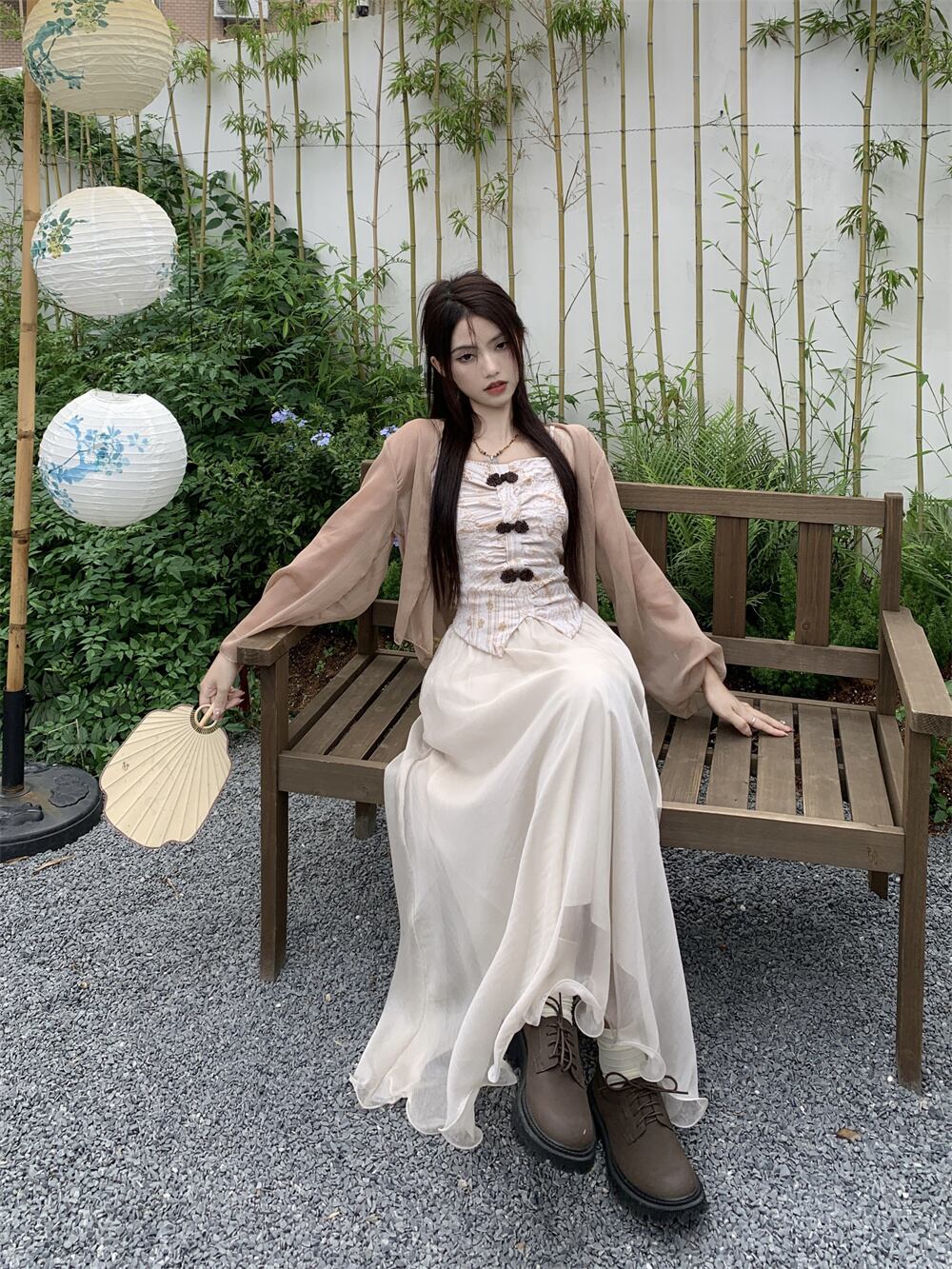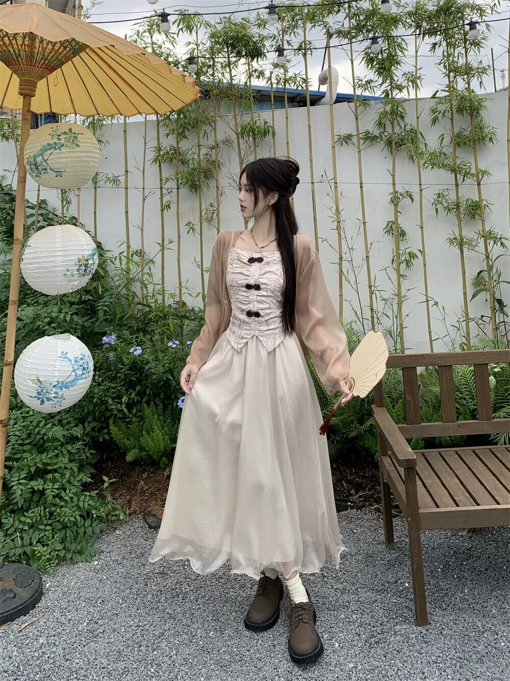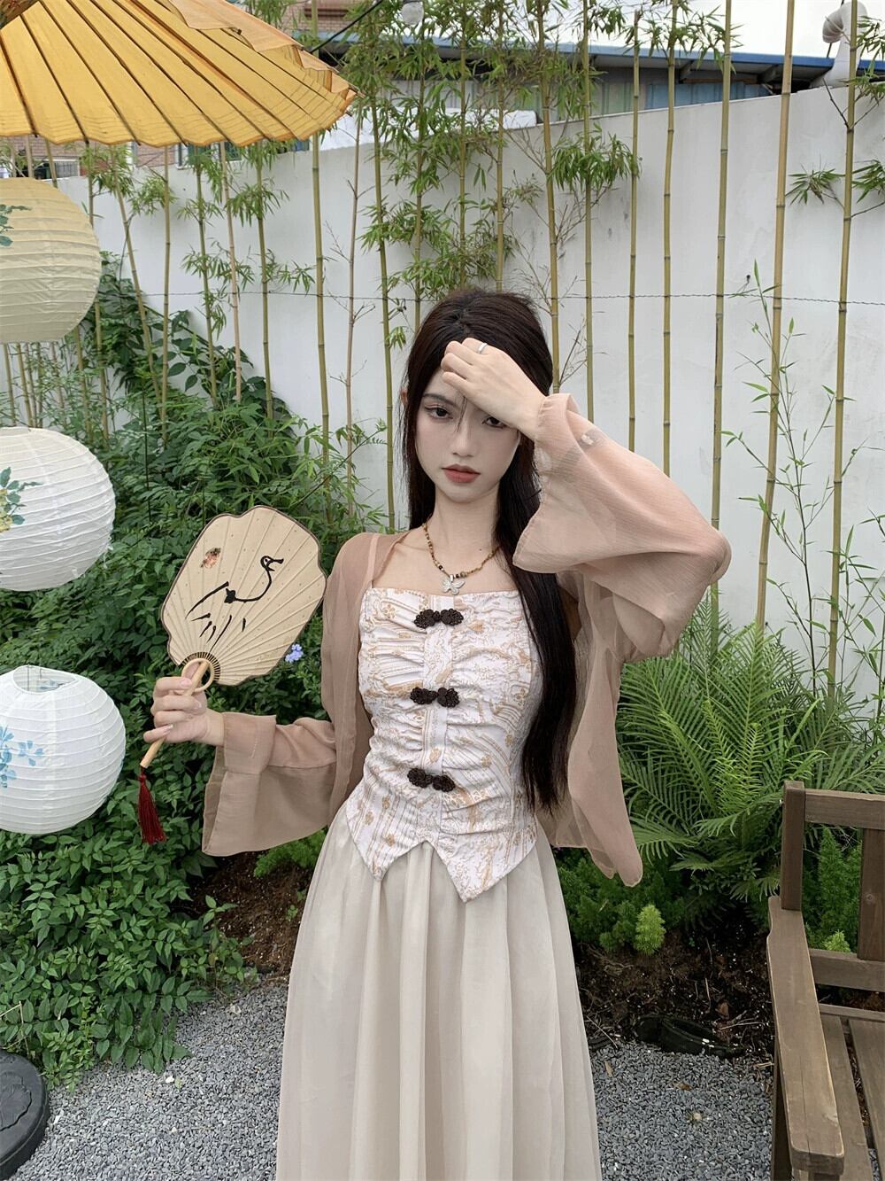 中国風バックルキャミソールレディースアウター春インナーウェアボトミングデザインセンスニッチショートノースリーブトップ 半袖 ハーフスリーブ スプリング 春物 8571667240816886