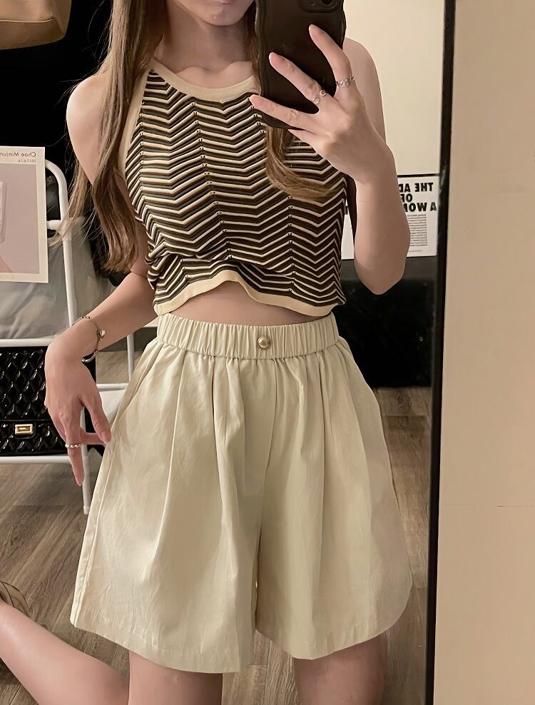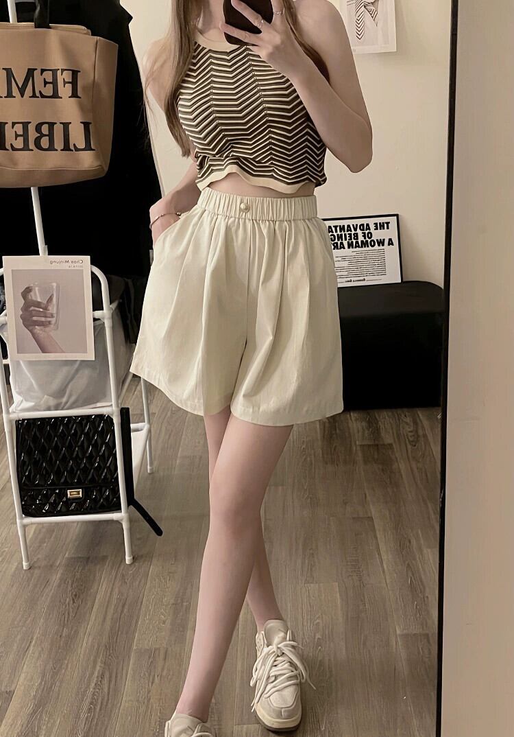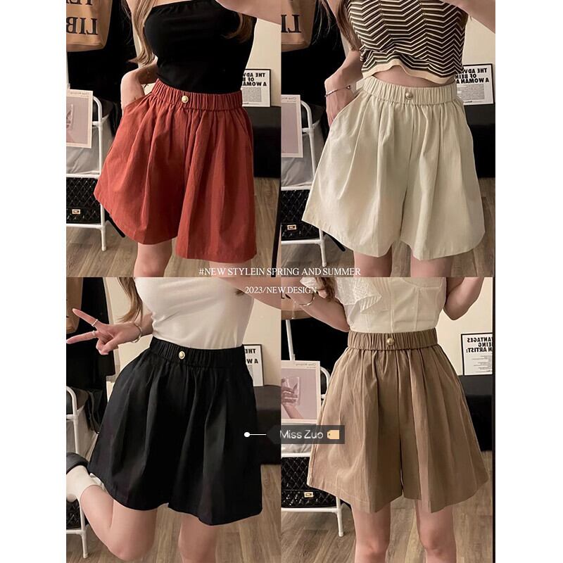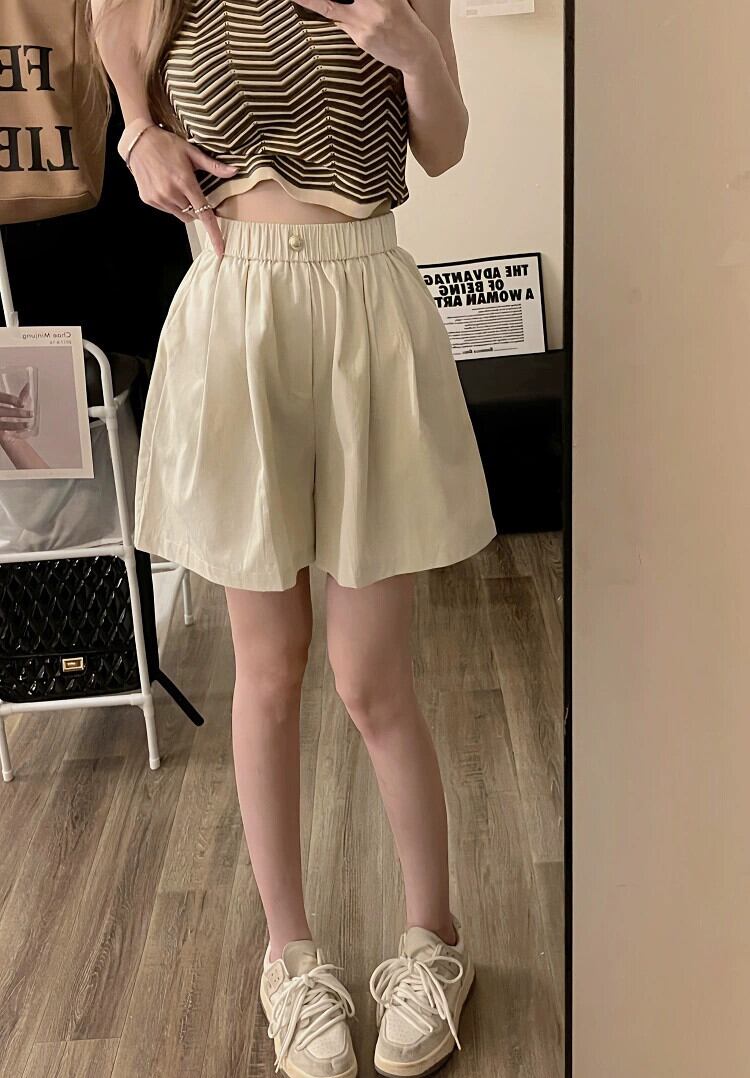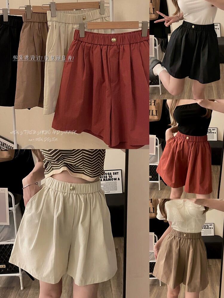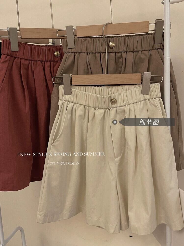 赤い弾性ウエストカジュアルショーツ女性の夏の 2023 新しいハイウエストルーズストレートオールマッチ A ラインワイドレッグパンツ ハイウェスト レッド エラスティック 伸縮 サマー 夏物 ブルマー Aライン 8571631625931662