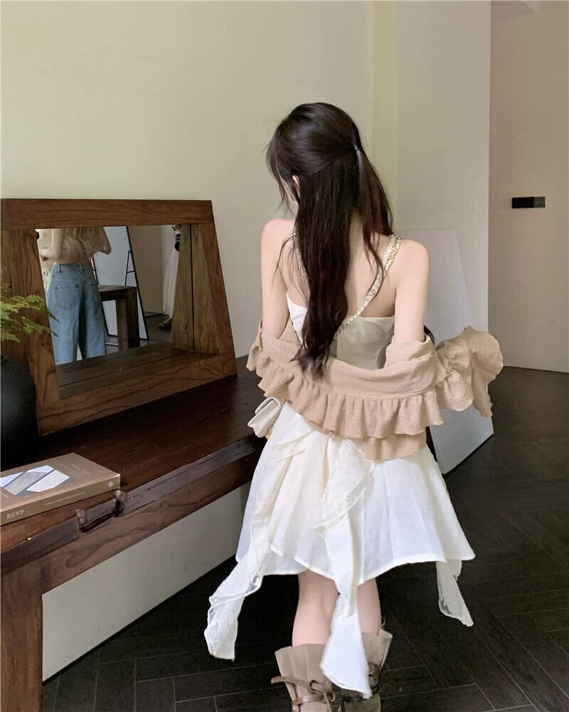 不規則なスリングドレスの女性の 2023 夏の新しい優しい風ウエストデザインセンスニッチ小さなスカート サマー 夏物 8571616960125799