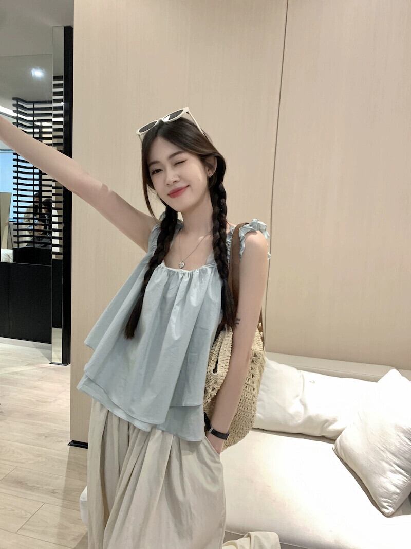 キャミソールレディースアウター2023夏新作ネットレッドスタイルノースリーブシャツフレンチスイートスモールトップ 大人ガーリー スウィート キュート カジュアル サマー 夏物 8571622673103073
