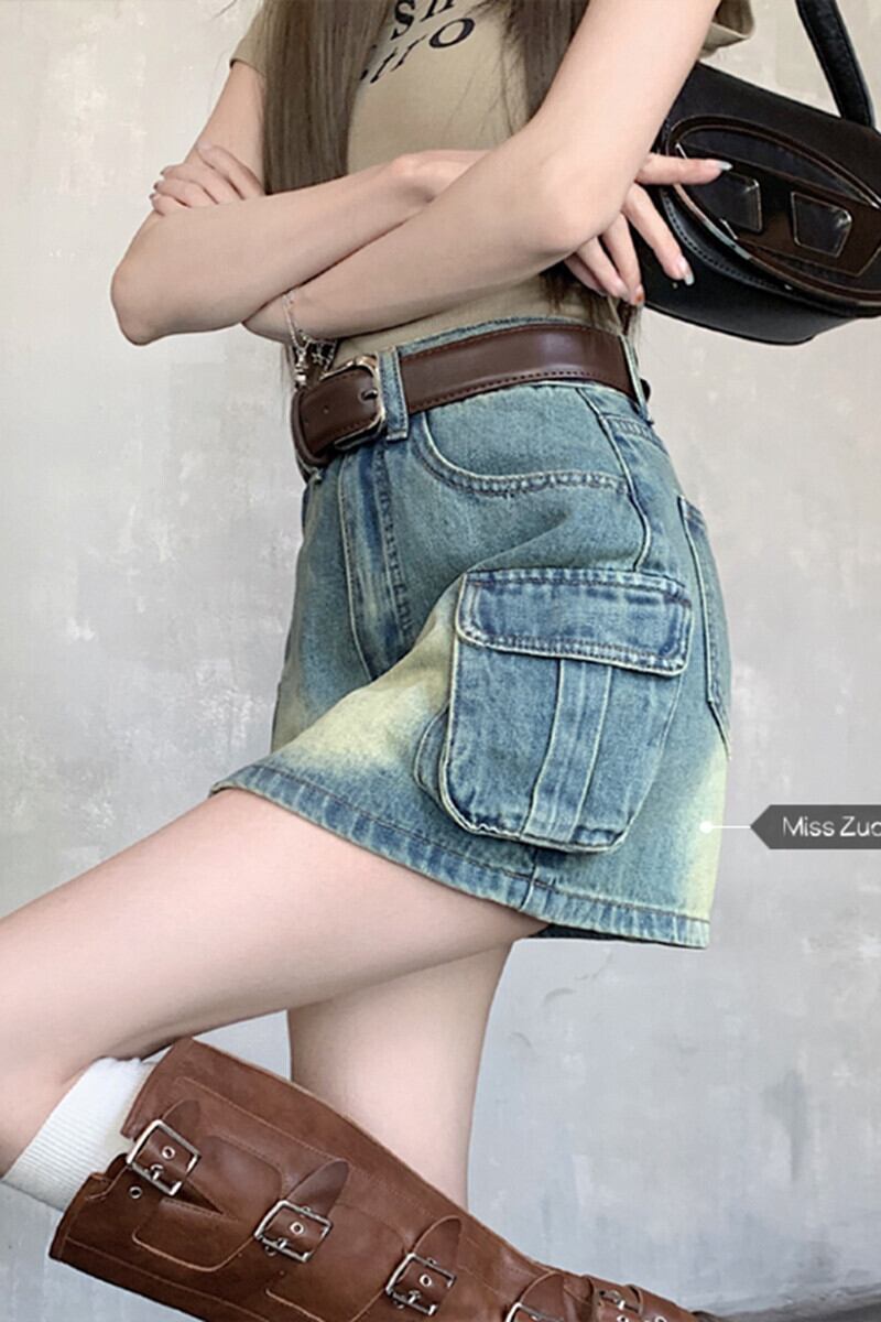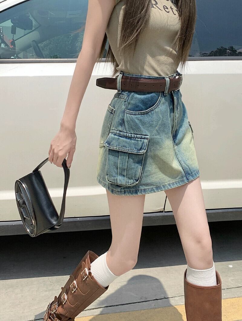 ツーリングデニムスカートの女性の夏のレトロ A ラインスカート 2023 新しいハイウエストスリムバッグヒップショートスカート ハイウェスト サマー 夏物 Aライン 8571653045693347