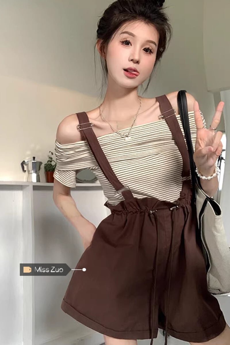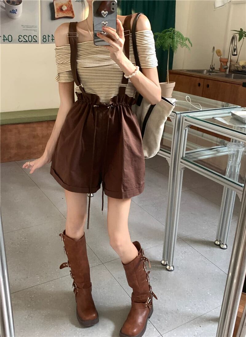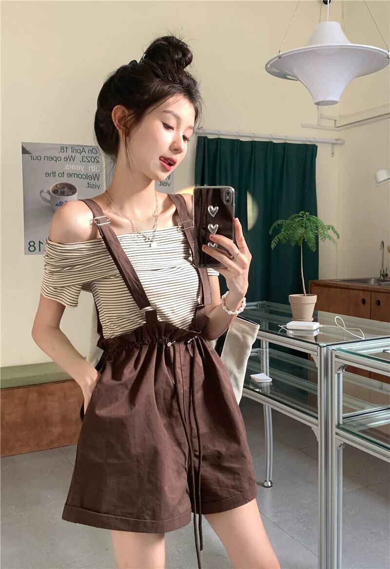 バドオーバーオールショーツレディース2023夏新作スモールネットレッドアインスタイル二着ワイドレッグパンツ蜂と年齢減少後 サマー 夏物 ブルマー 8571628360130817