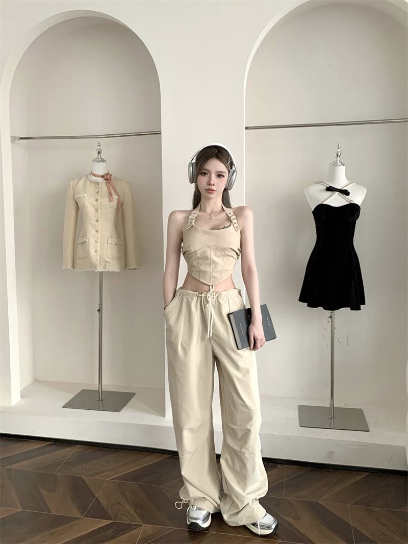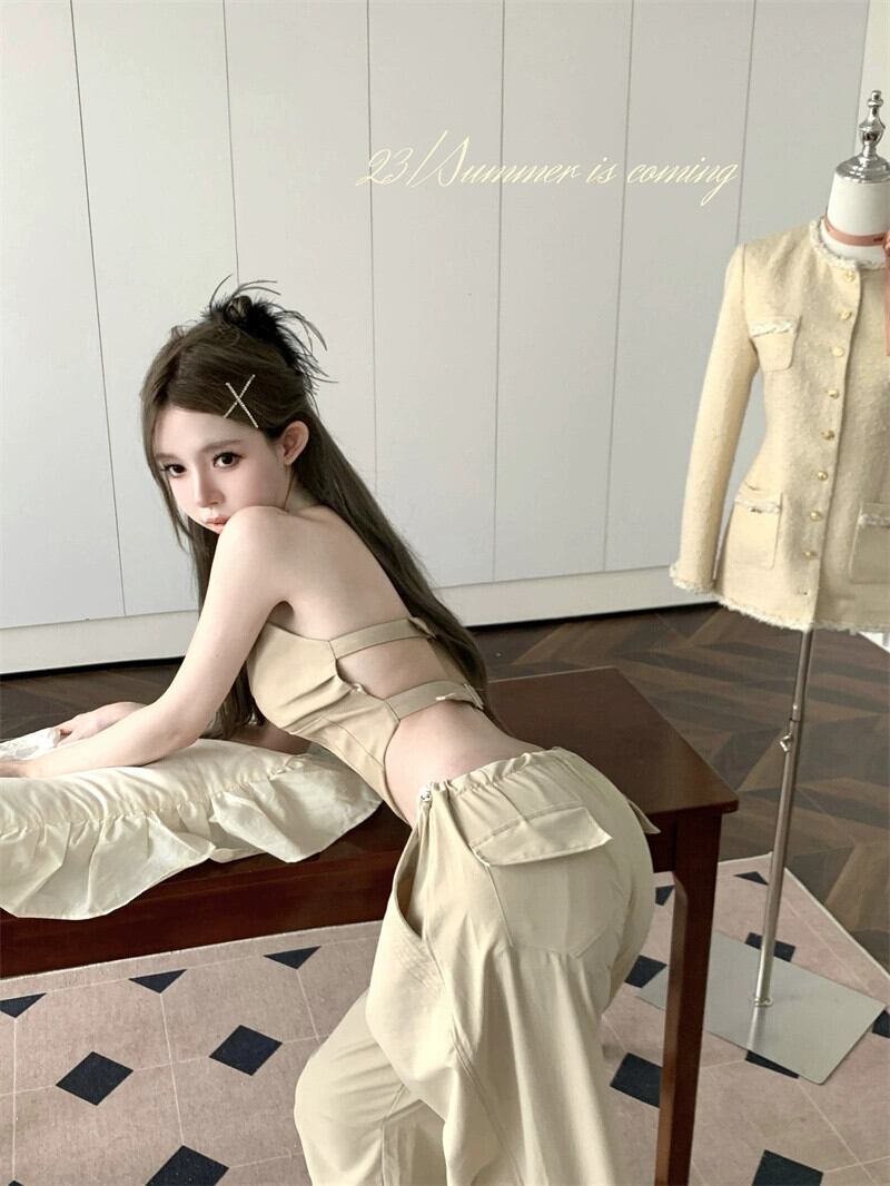 ホルターネック キャミソール レディース 夏 アウター ホルタートップ アメリカン レトロ スイート クール 不規則ショート 胸巻き 大人ガーリー スウィート キュート カジュアル サマー 夏物 8571622620410165