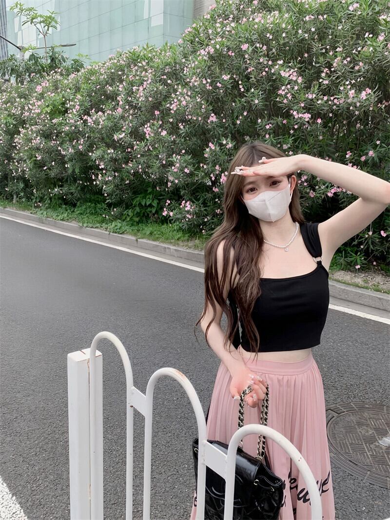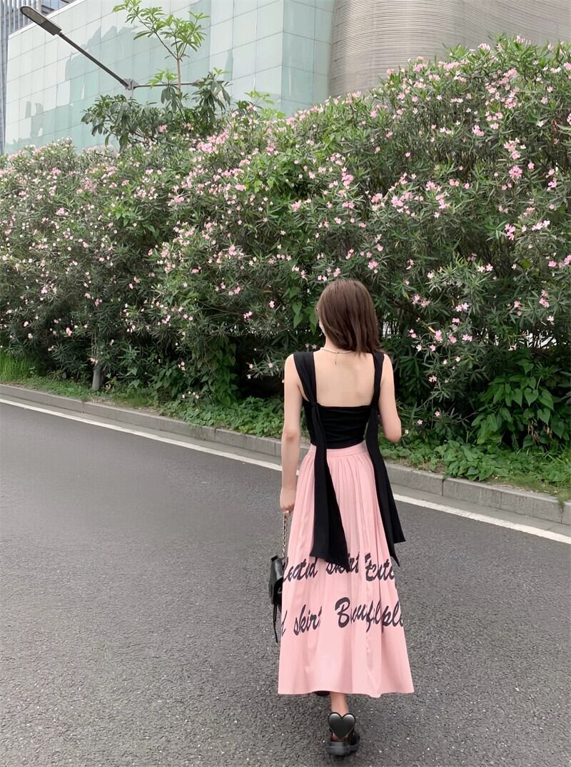 ピンクのプリーツスカートスカートの女性の夏のハイウエスト A ラインスカート 2023 新しい梨型の図ミドル丈ロングスカート ハイウェスト サマー 夏物 Aライン 8571664526464554
