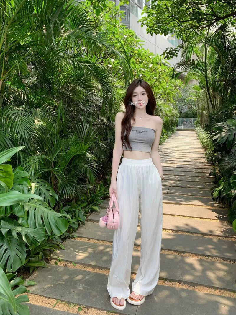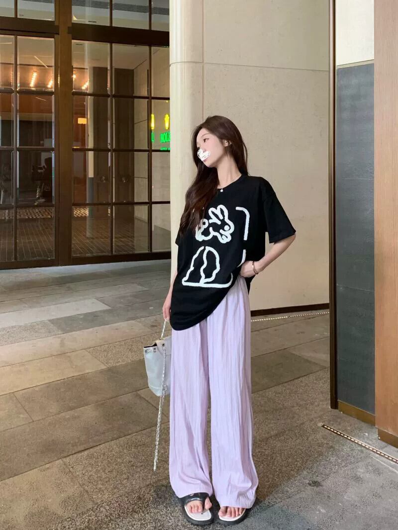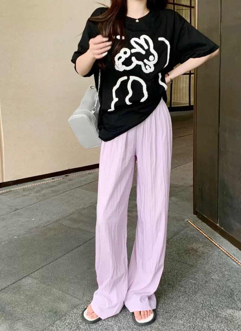 パープルモップパンツ女性のハイウエストドレープワイドレッグパンツ2023夏新しいルーズストレート小さなカジュアルパンツ ハイウェスト サマー 夏物 ワイドパンツ 8571677003594445