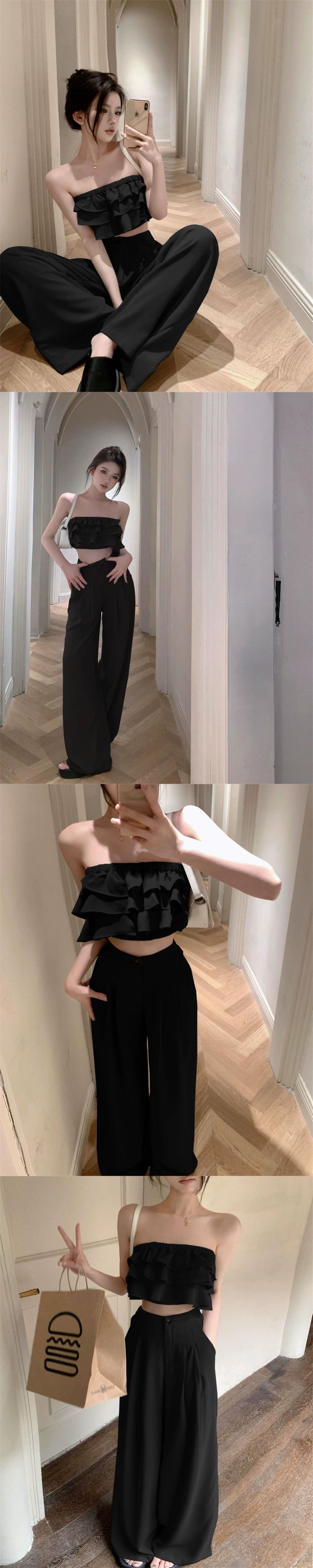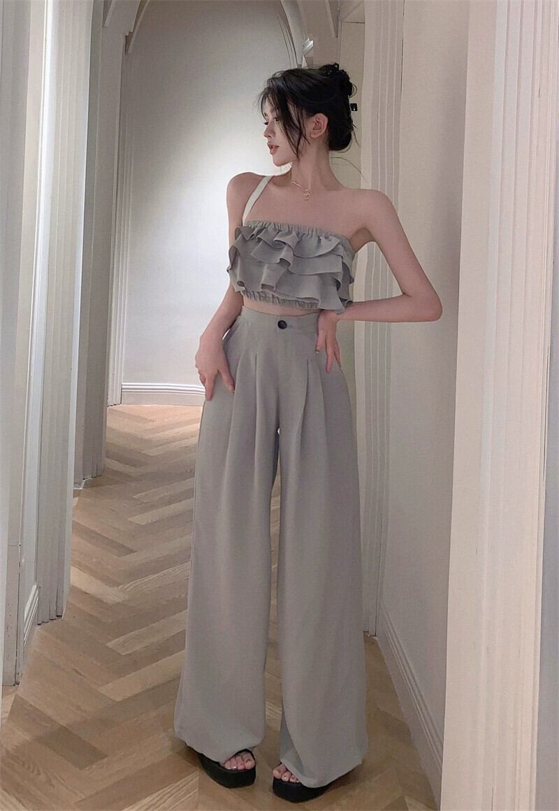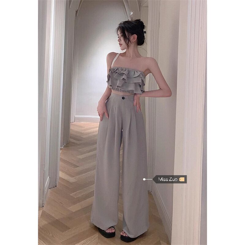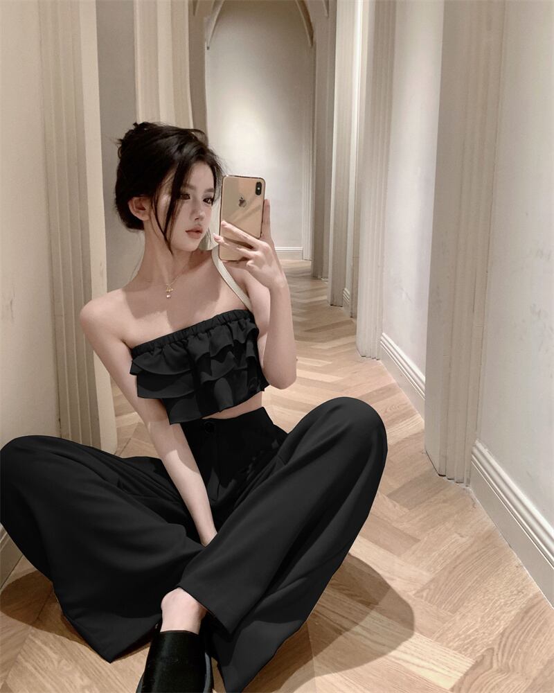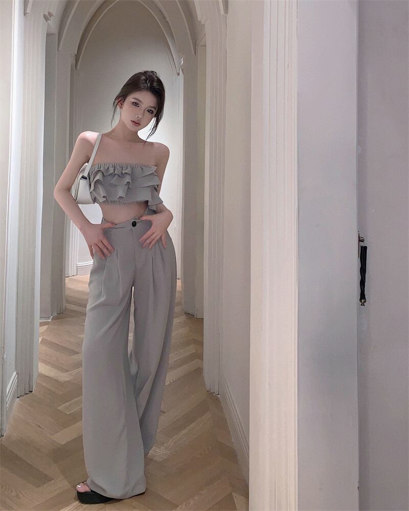 グレーケーキチューブトップ女性の夏の新しい純粋な欲望の女の子セクシーなユニークな特別なフリルの外側の胸を着て ラッフル サマー 夏物 ピュア 8571691498227051