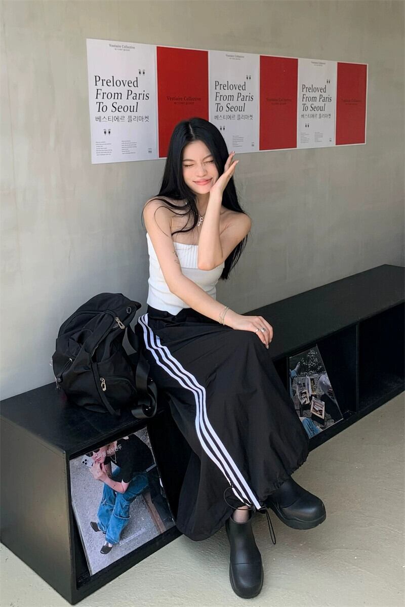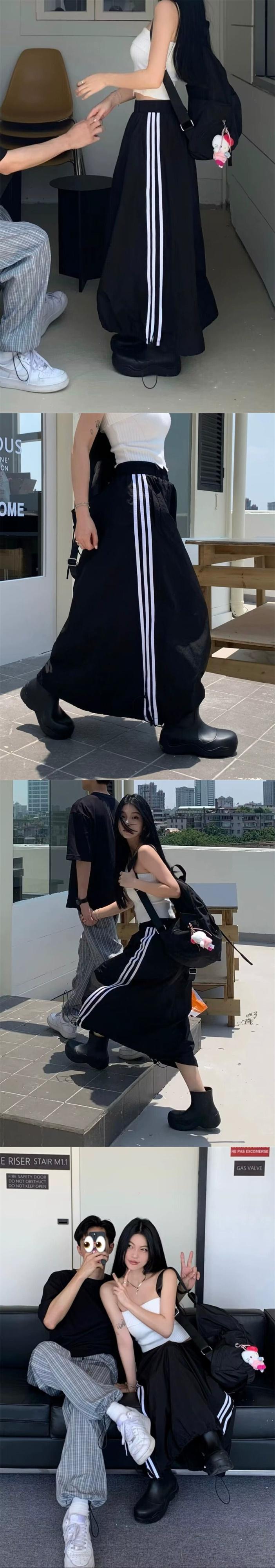 黒ツーリングスカートレディース夏アメリカンレトロハイウエストAラインスカートスポーツウィンドビーム裾ロングスカート ハイウェスト ブラック サマー 夏物 8571694410015640