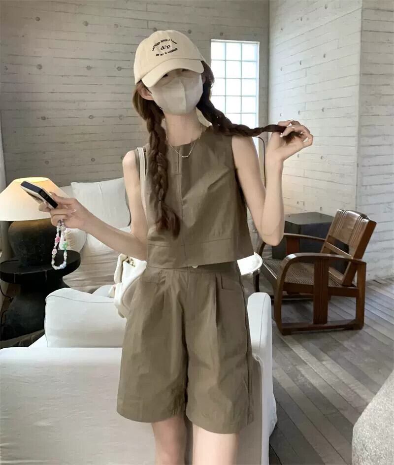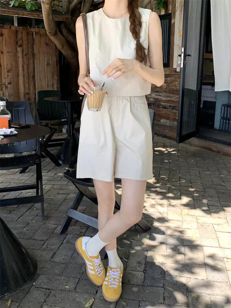 コーヒーカラーのカジュアルショーツ女性の夏の5点パンツ2023新しい小さな背の高いウエストレトロルーズワイドレッグパンツ サマー 夏物 ブルマー 857164320741100