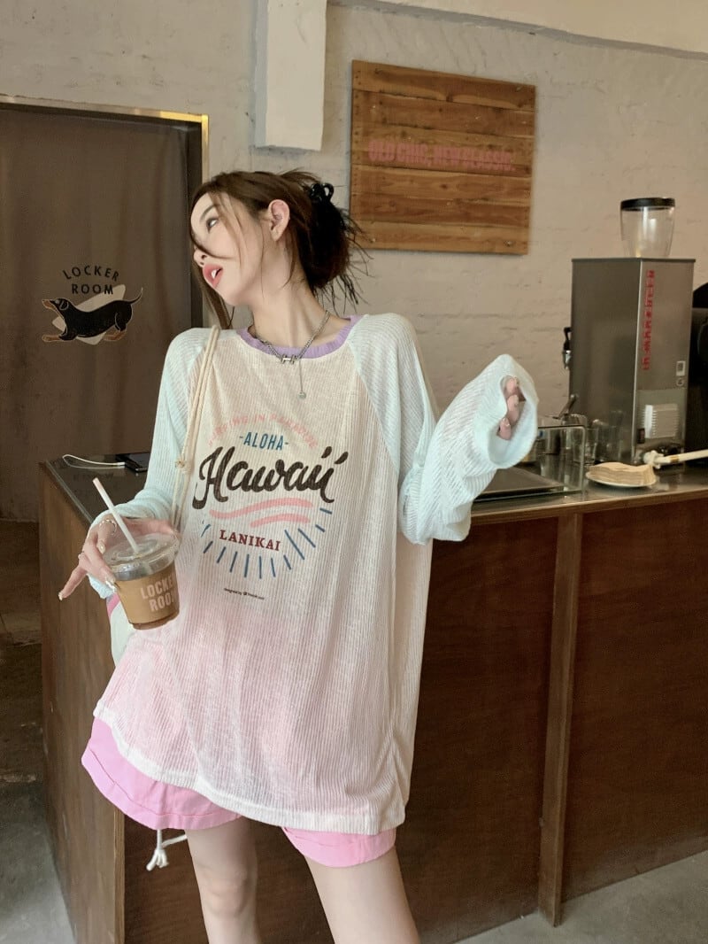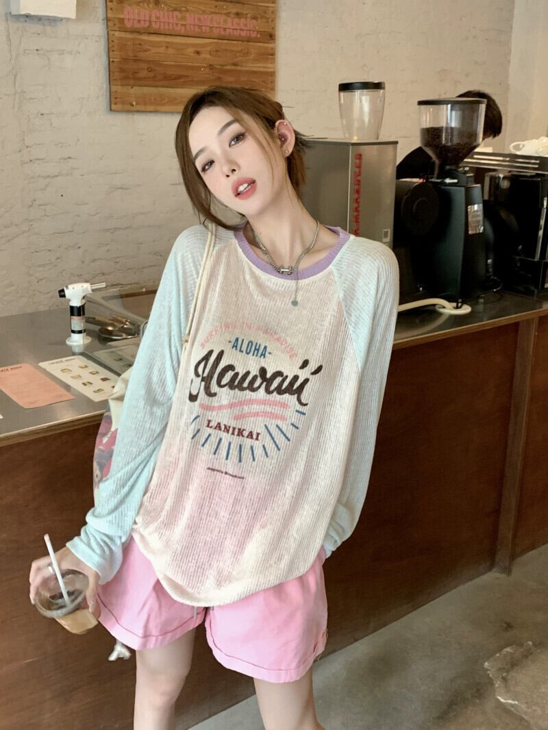 日焼け止めラグラン Tシャツ レディース 2023 春の新デザインセンスニッチ甘いルーズベリー長袖トップ ロング 大人ガーリー スウィート キュート カジュアル スプリング 春物 8571630968581233