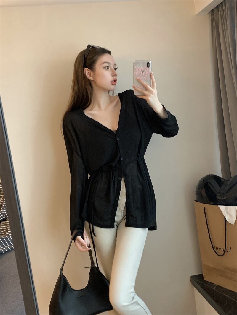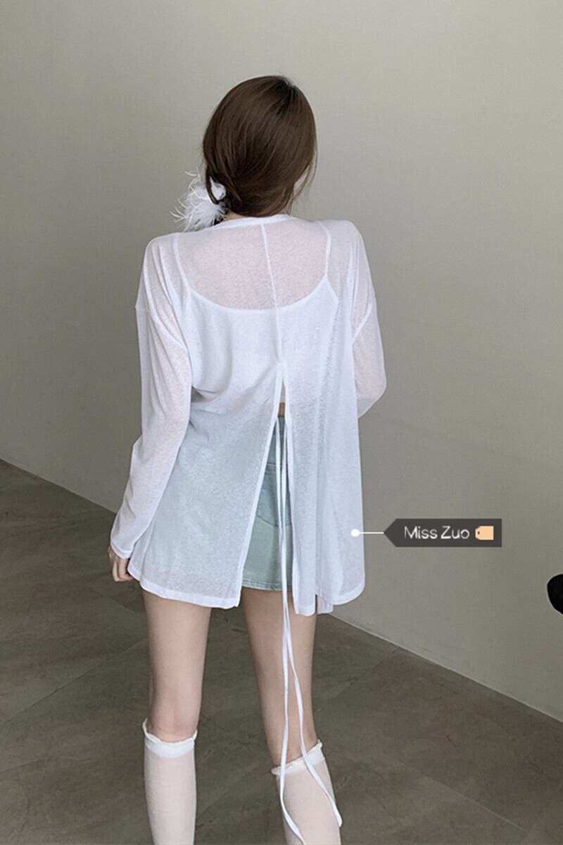 白い日焼け止めカーディガンジャケット女性の夏薄いセクション 2023 新しい緩い怠惰な風バックスリットトップ ホワイト サマー 夏物 857161894815653