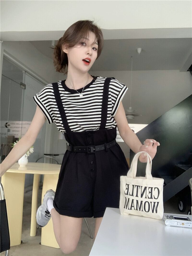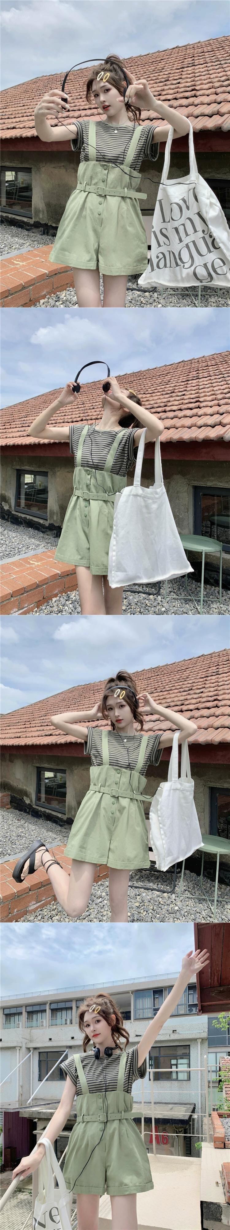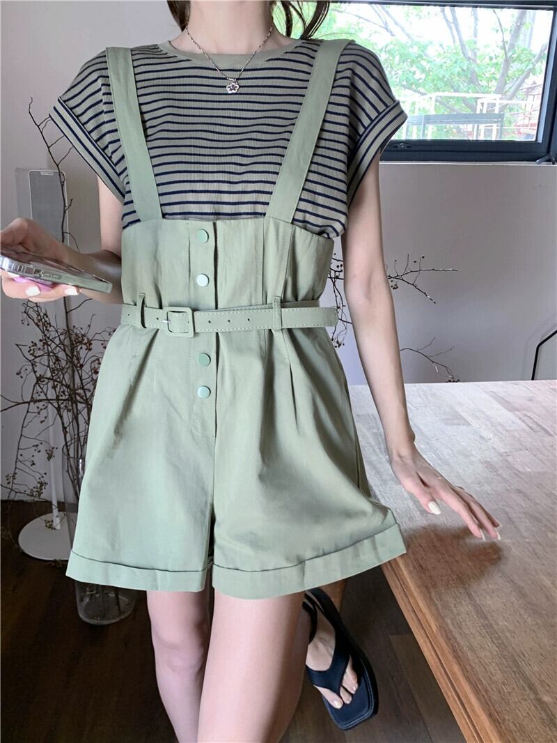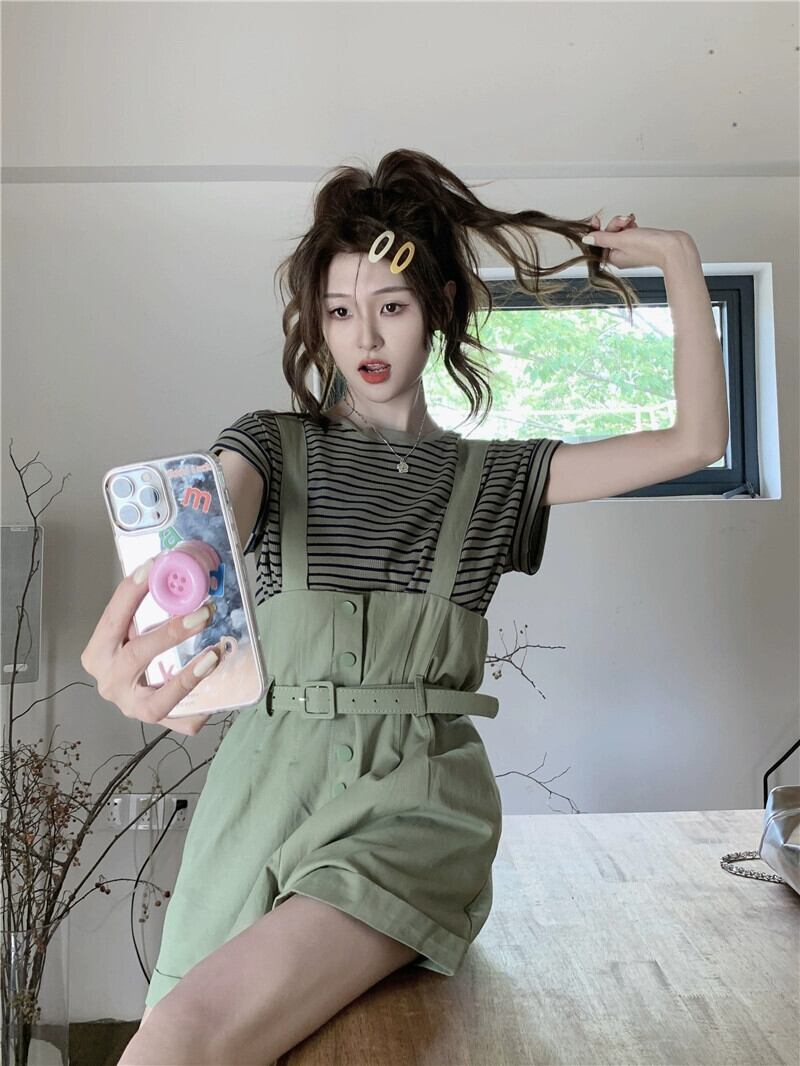グリーンオーバーオールショーツレディース夏小さい2023新しいデザイン感覚ルーズロールエッジカジュアルワイドレッグパンツ サマー 夏物 ブルマー 8571626539145549