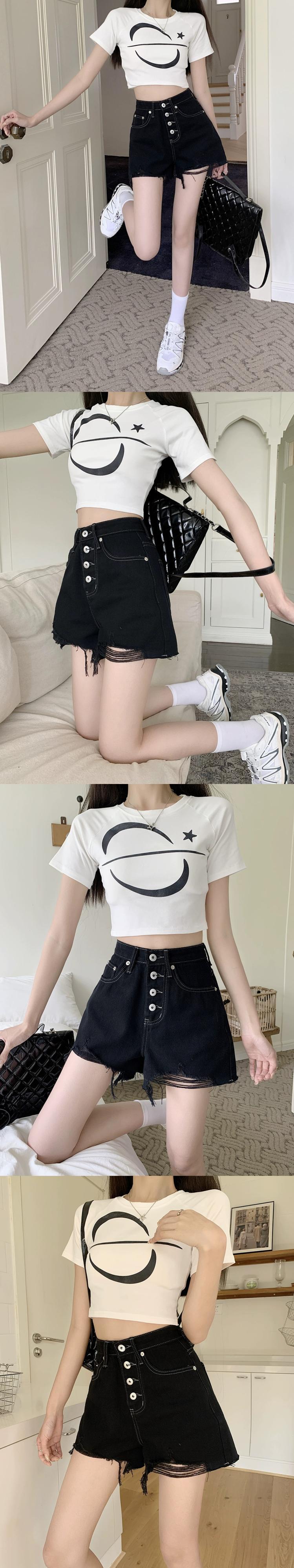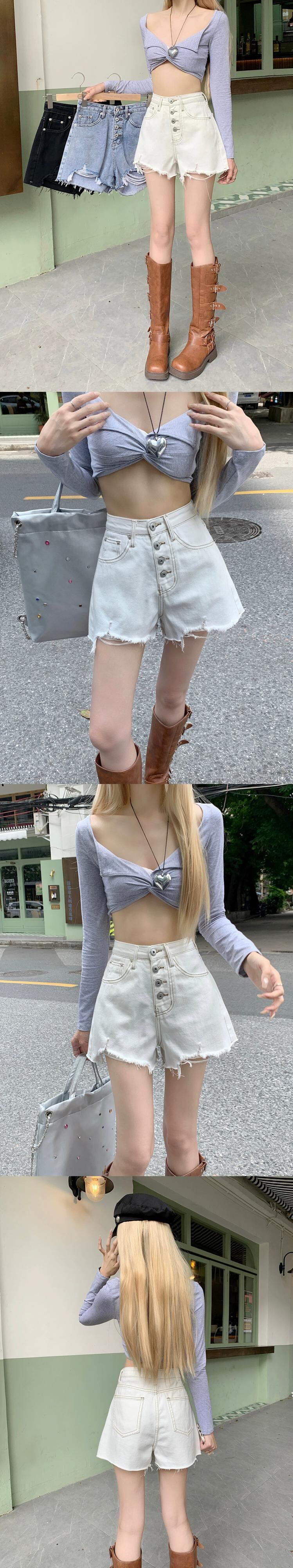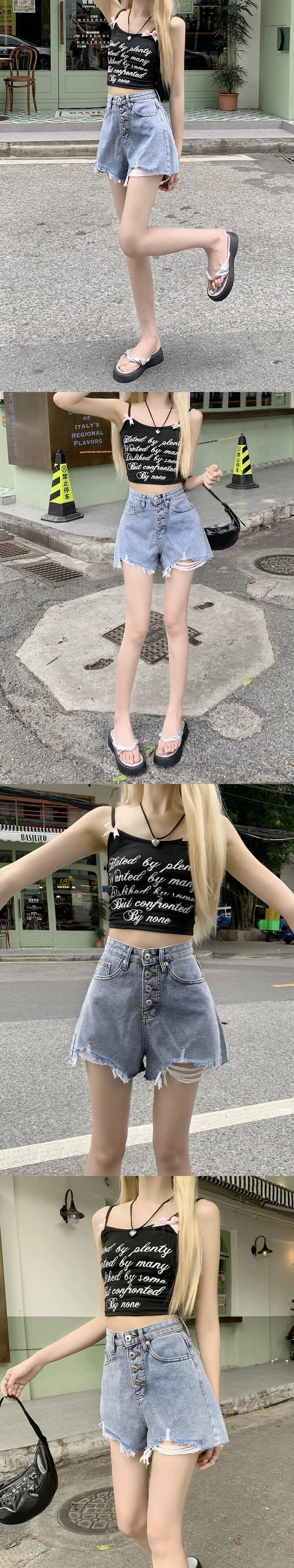 ホワイトリップドデニムショートパンツレディース2023年夏新作ハイウエストルーズAラインワイドレッグパンツ ハイウェスト サマー 夏物 ショーツ ブルマー 857163477843106