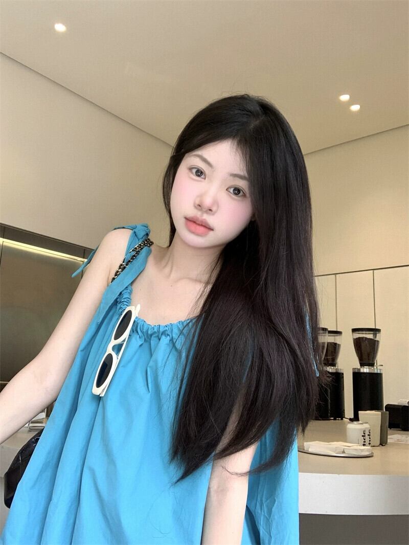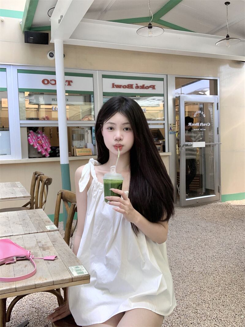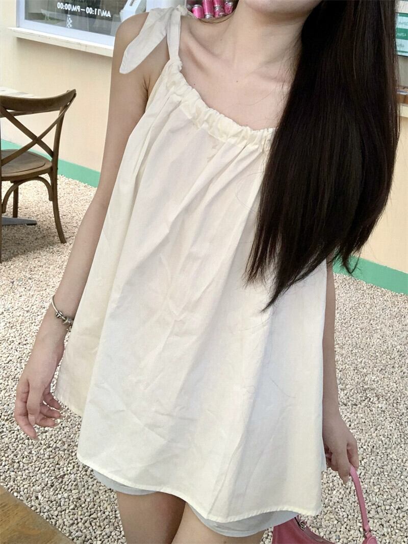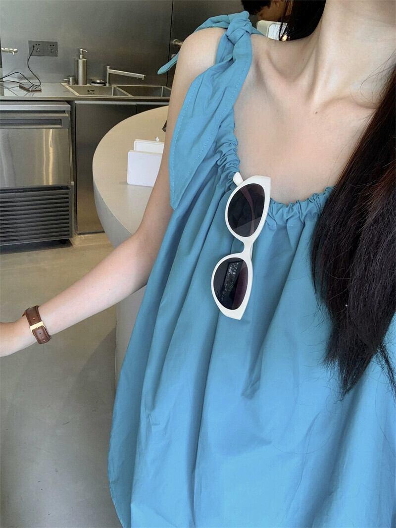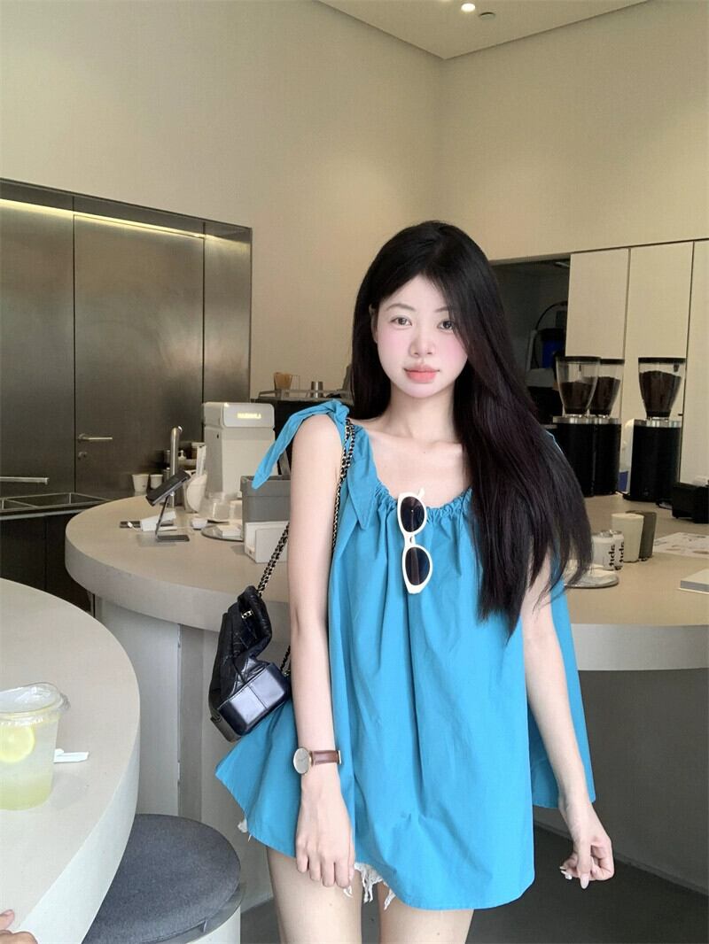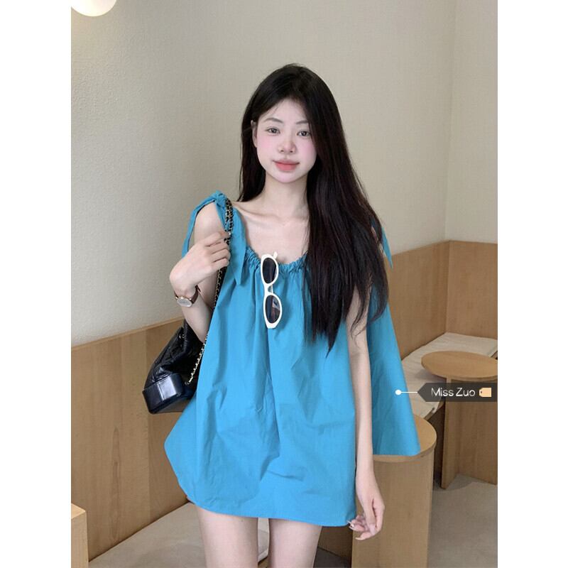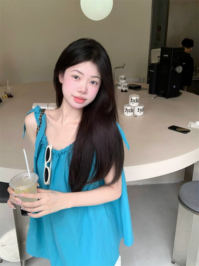 ブルーノースリーブシャツ女性の夏のドーパミンウェア甘いショーホワイトカバー腹ルーズ小さなスリングトップス 大人ガーリー スウィート キュート カジュアル サマー 夏物 8571650129300082