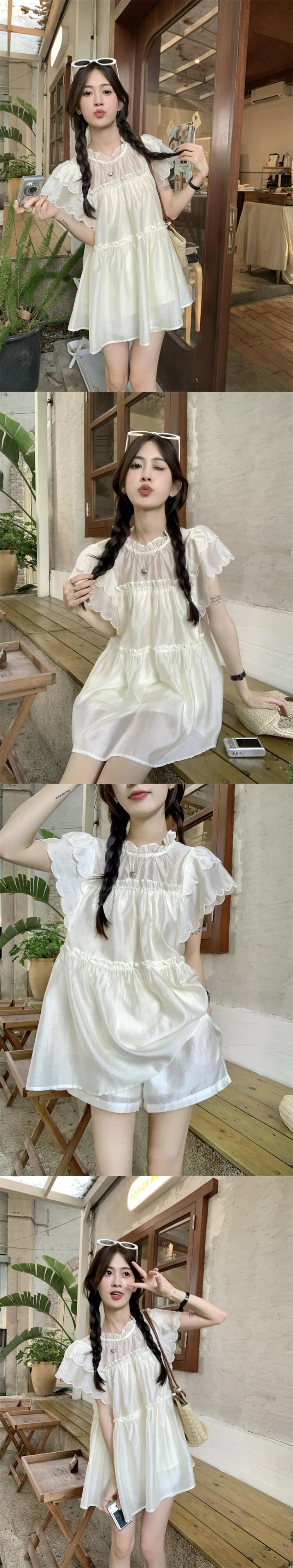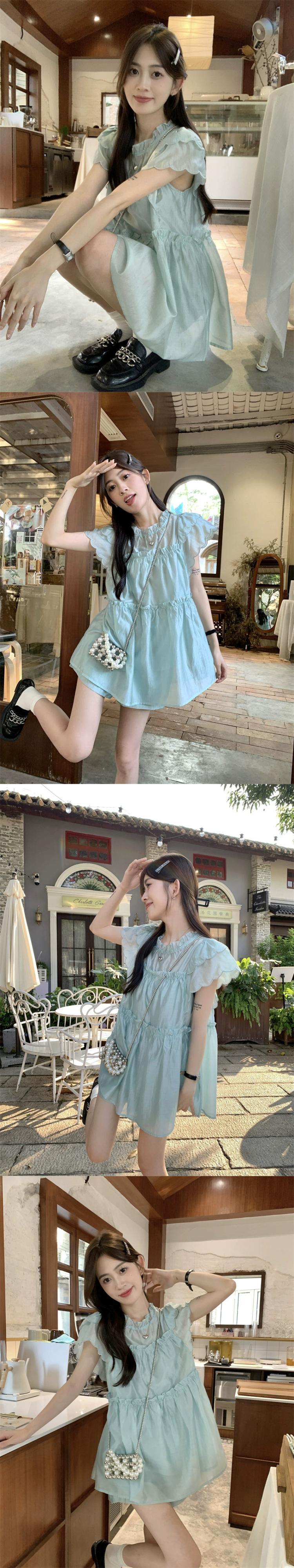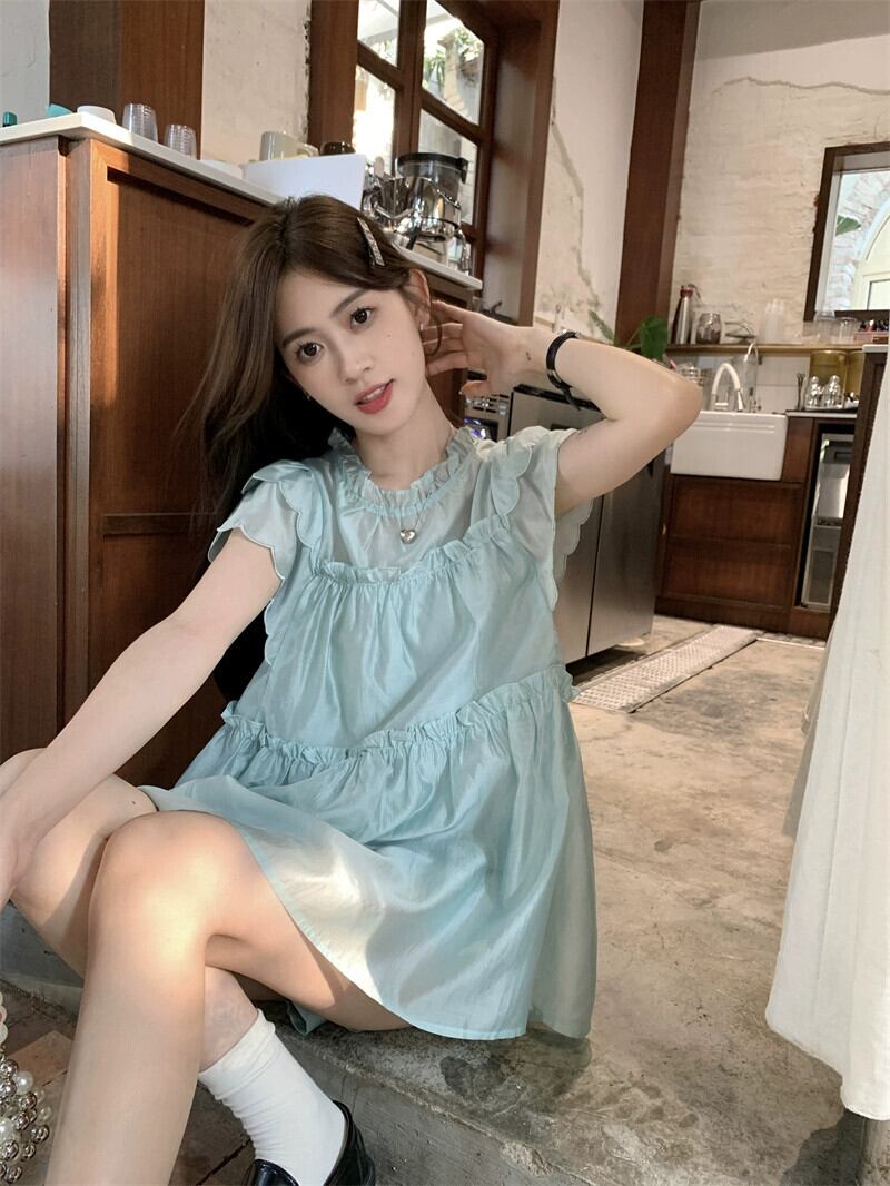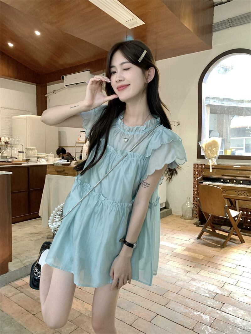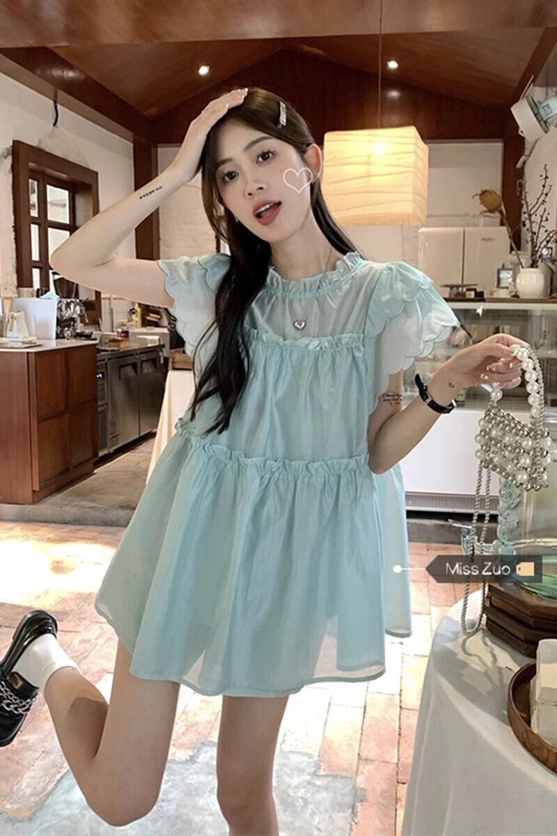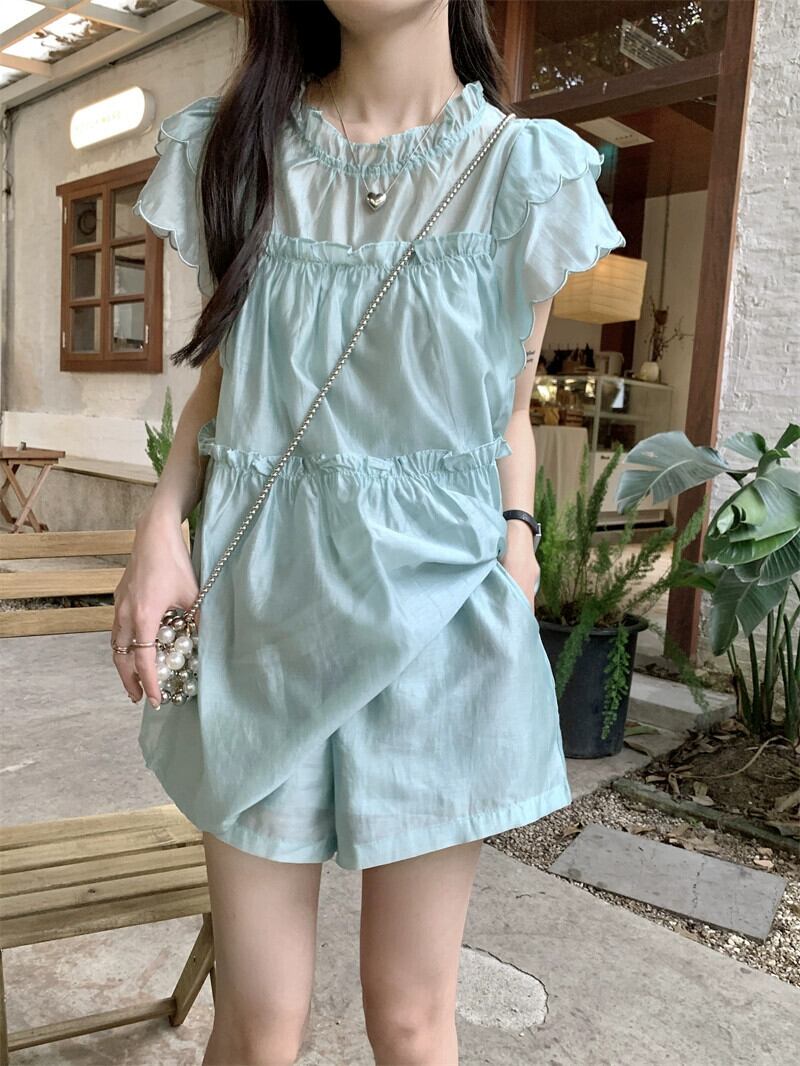 Feifei スリーブトップ女性の夏 2023 新しいフレンチスイートスーパーフェアリールーズ小さな gr グリーンシャツスーツ 大人ガーリー スウィート キュート カジュアル サマー 夏物 8571636438531634