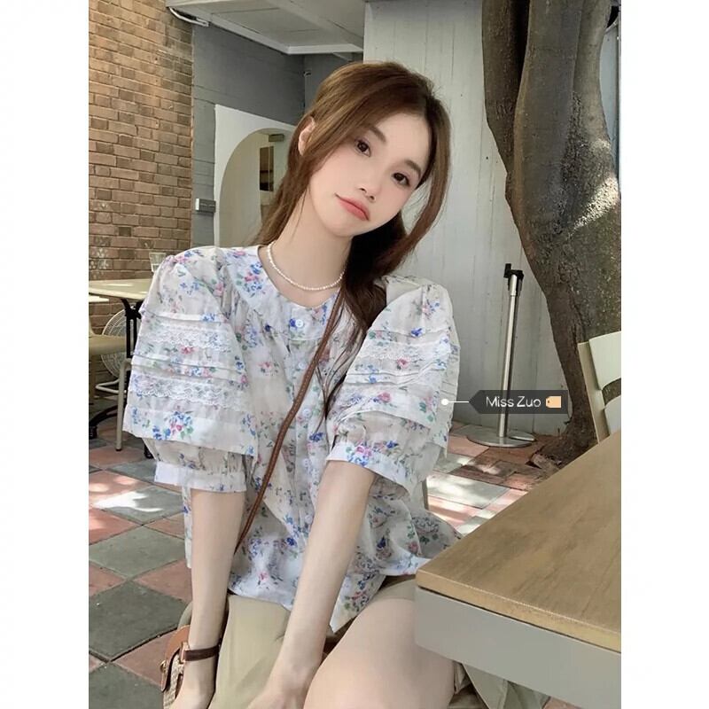 パフスリーブショートトップレディース2023夏新作フランスの甘くて優しい気質の小花柄シャツ 大人ガーリー スウィート キュート カジュアル サマー 夏物 8571640625113105