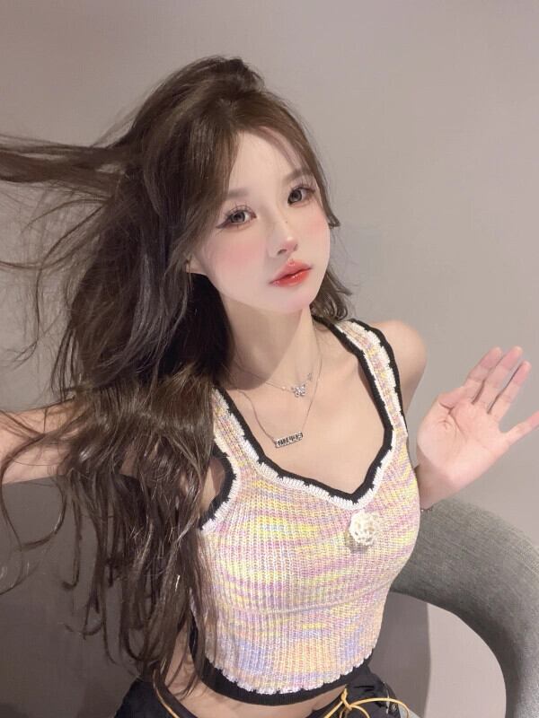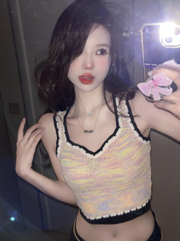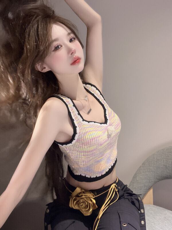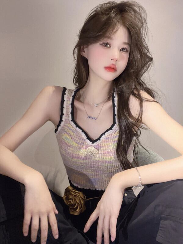 小さな香りのスタイルのカラーニットキャミソールレディースインナーとアウターウェア胸を包む夏のドーパミン甘いノースリーブトップ 大人ガーリー スウィート キュート カジュアル サマー 夏物 8571650214035626