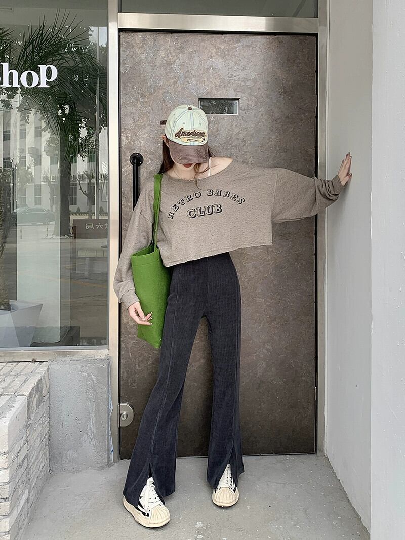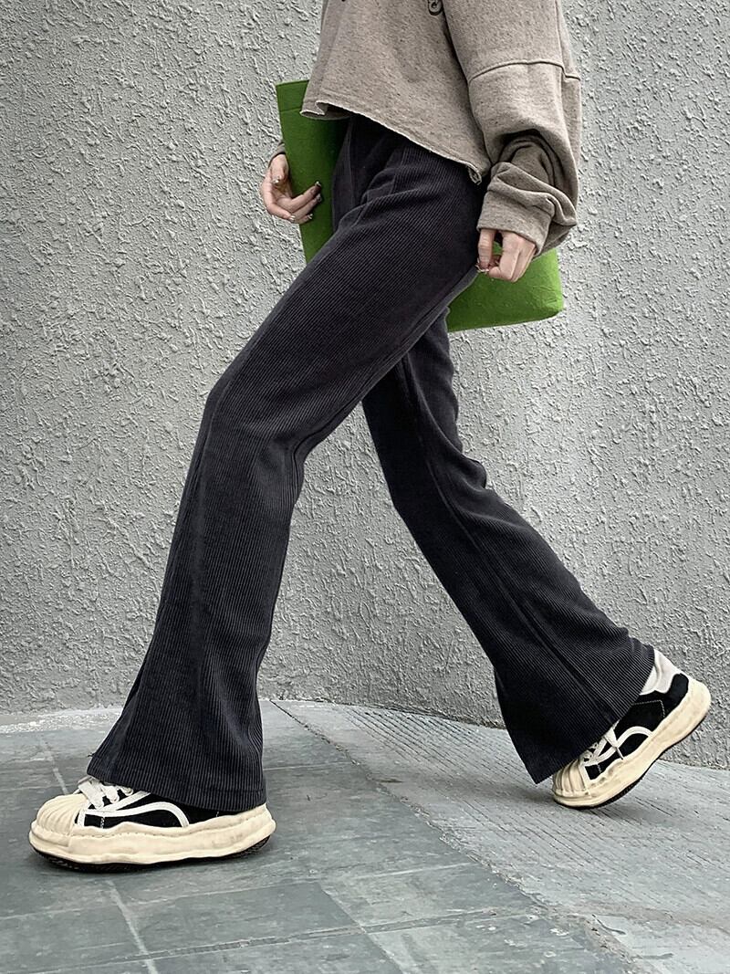 秋冬のマイクロフレアパンツの女性、厚みのある2023新しいスタイルの小さなハイウエストストレートスリットカジュアルロングパンツ レッド オータム 秋物 ウィンター 冬物 8571682440365786