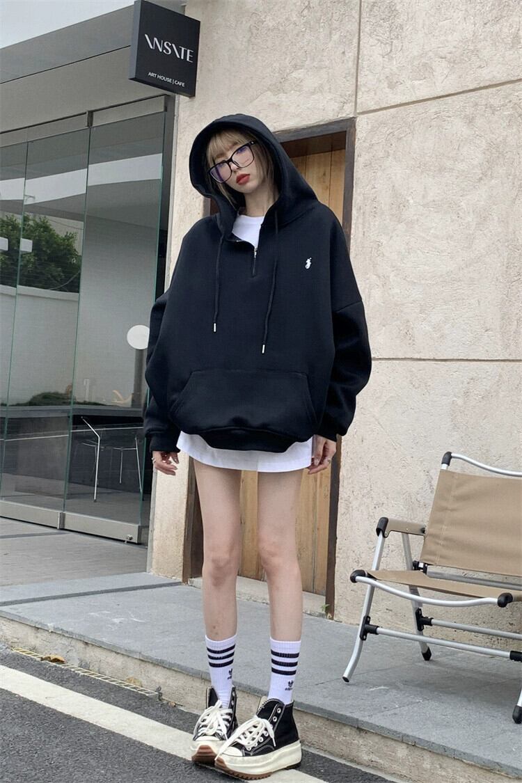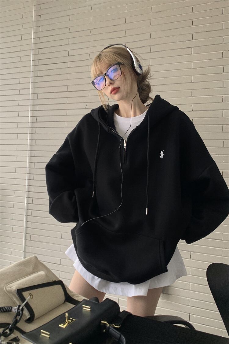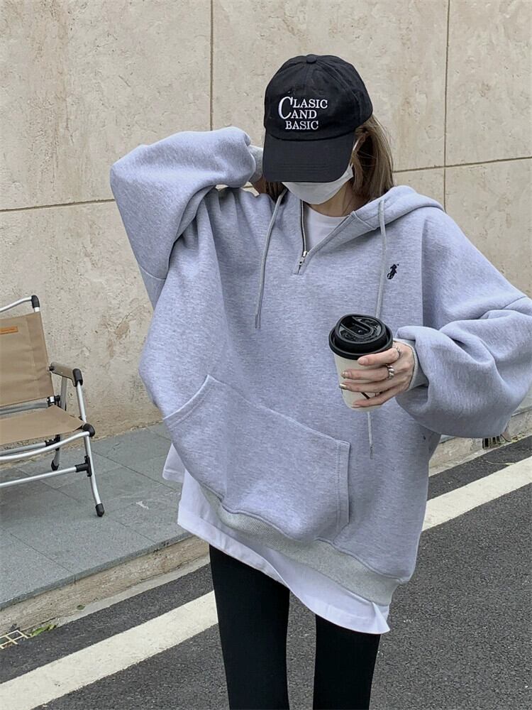 アメリカンレトロなフード付きベルベットスウェットシャツの女性の2023年秋冬の新しいスタイルの怠惰な小さな長袖トップ ロング オータム 秋物 ウィンター 冬物 8571681437276808