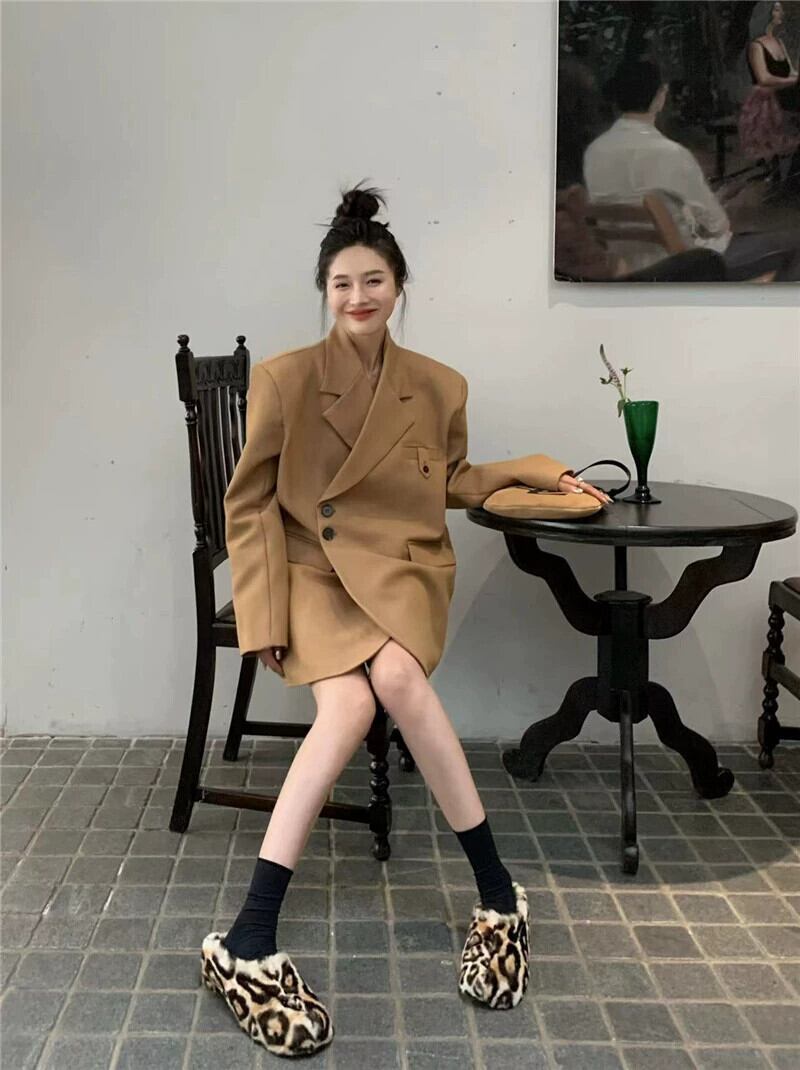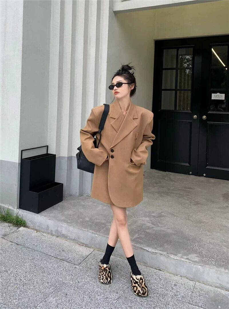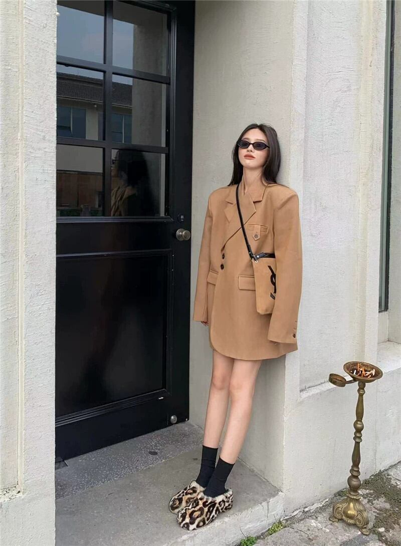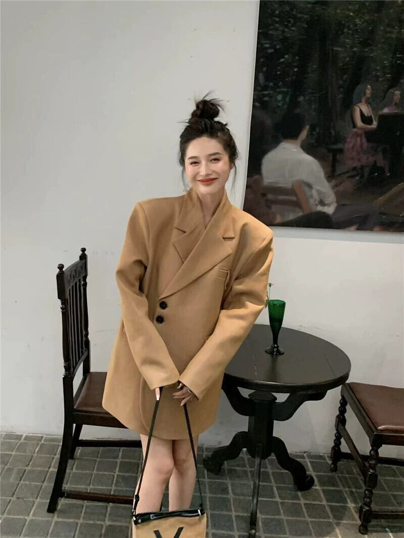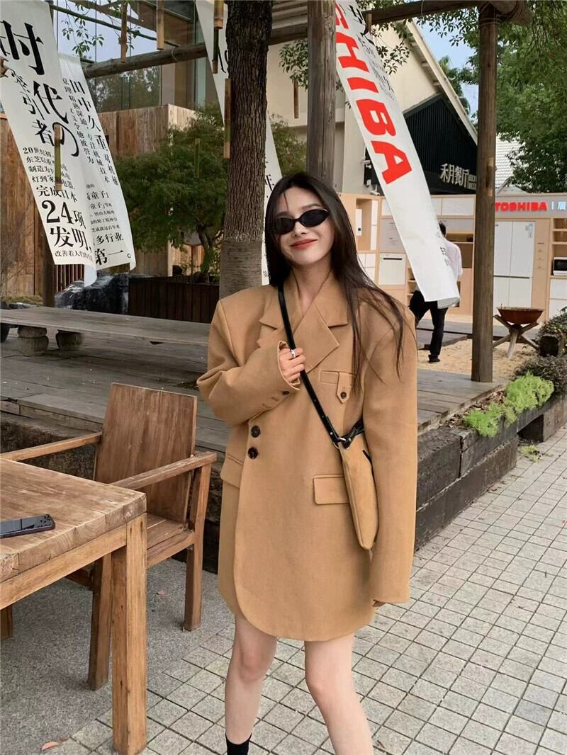 カーキブレザー女性の2023秋の新作、ゆったりとしたファッショナブルな気質のハイエンドミドル丈カジュアルスーツ オータム 秋物 8571693784715295