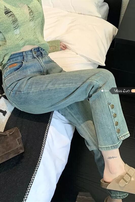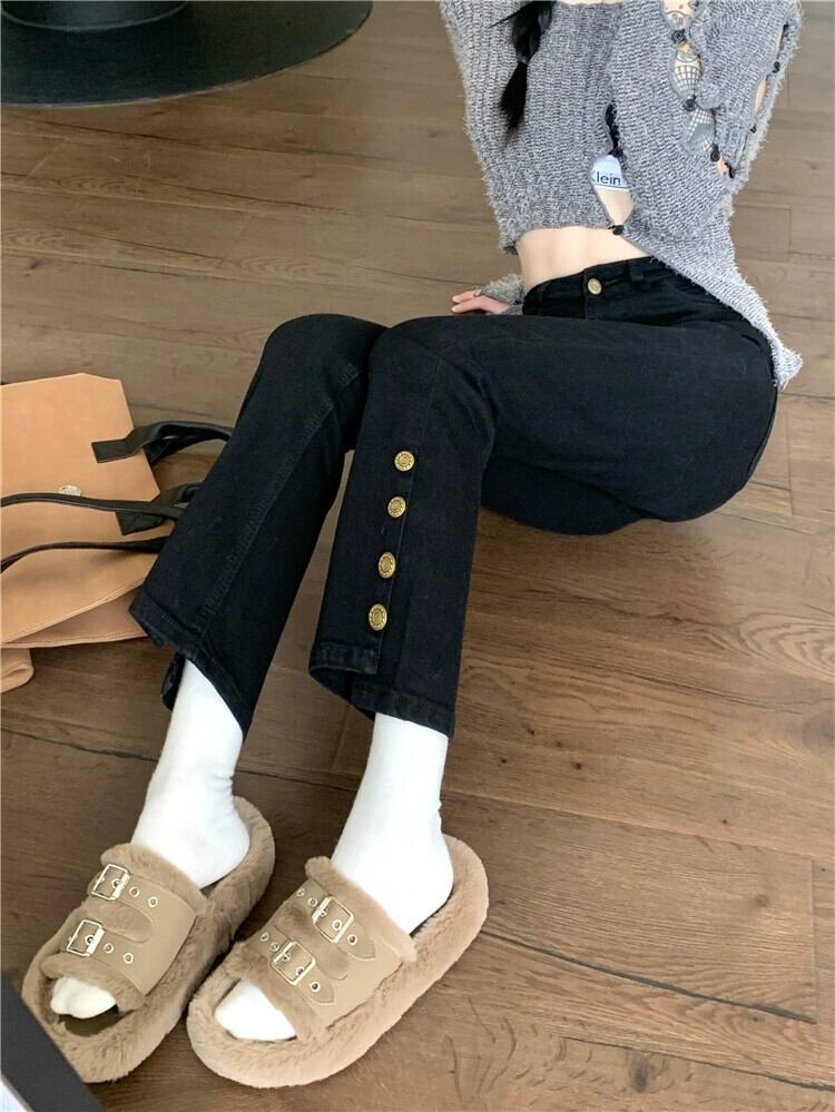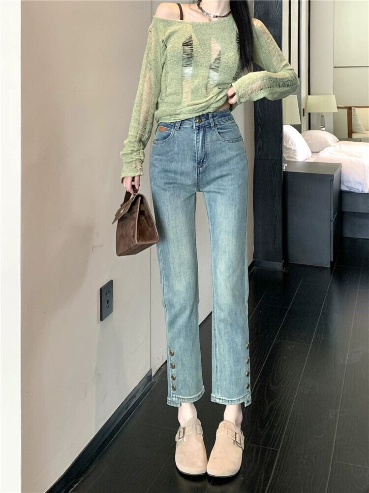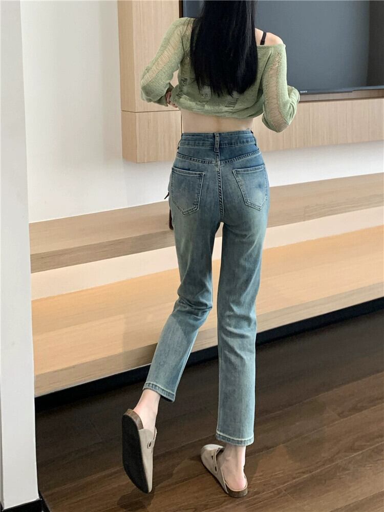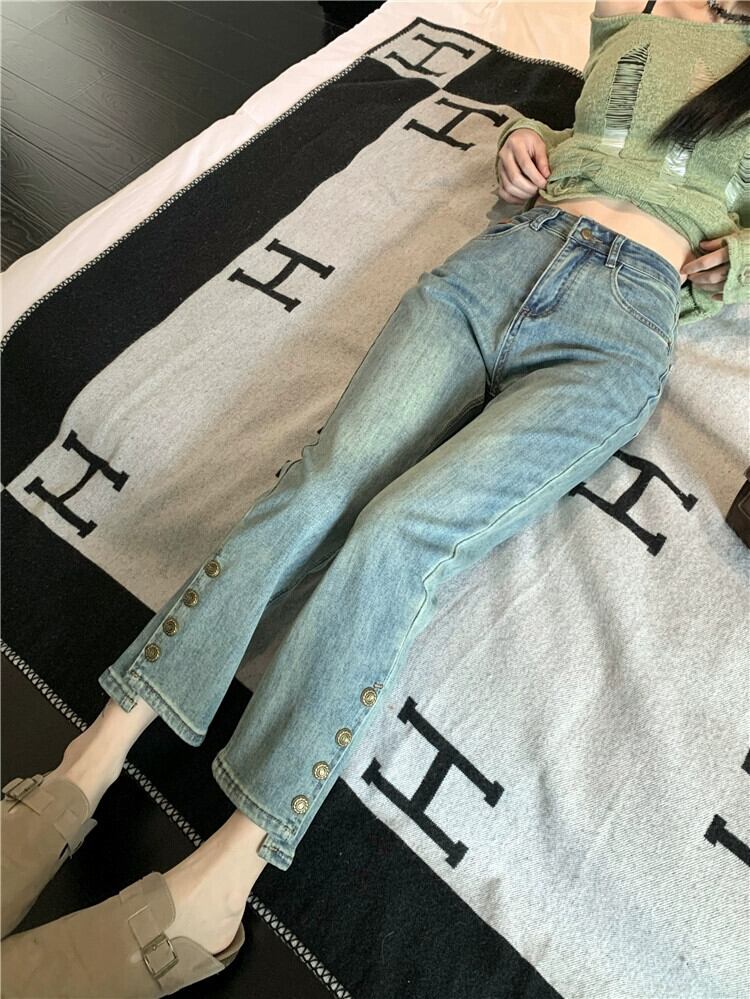 ナインポイントジーンズレディースデザインニッチ2023秋の新スタイルの小さなレトロハイウエストストレートパイプパンツ オータム 秋物 8571669337591987