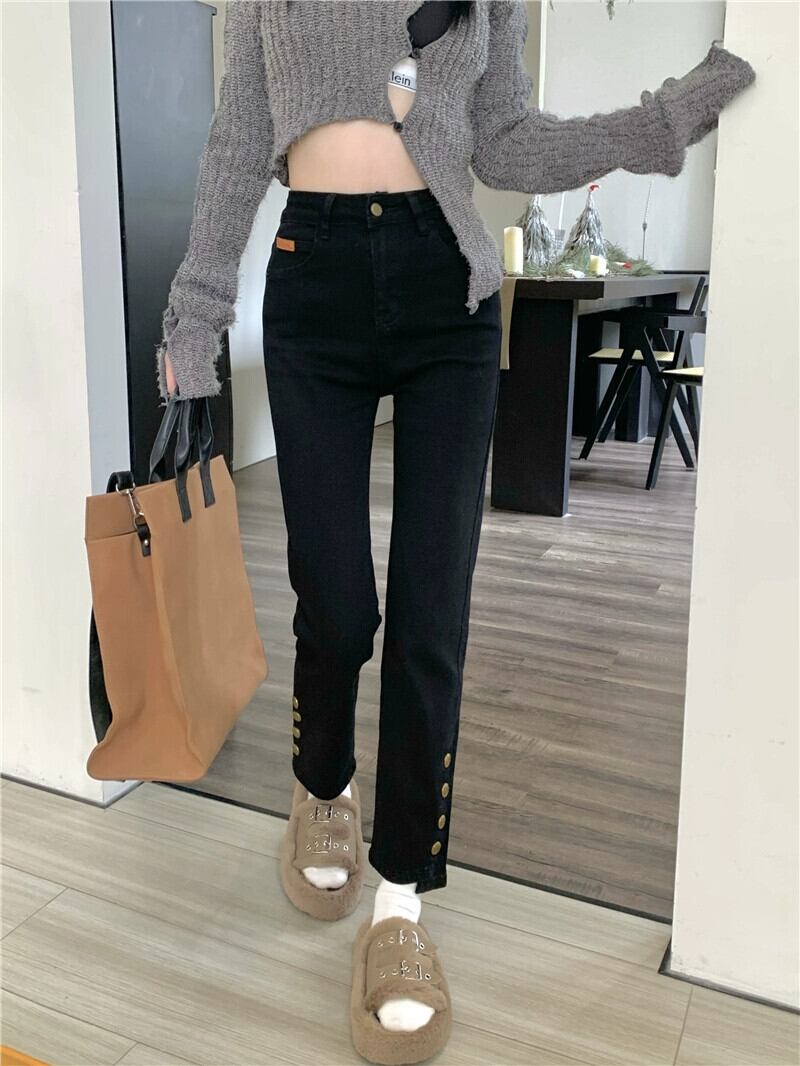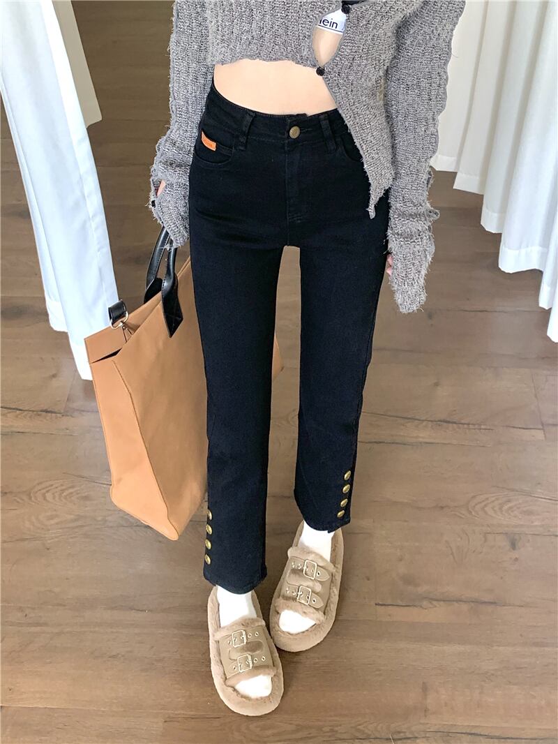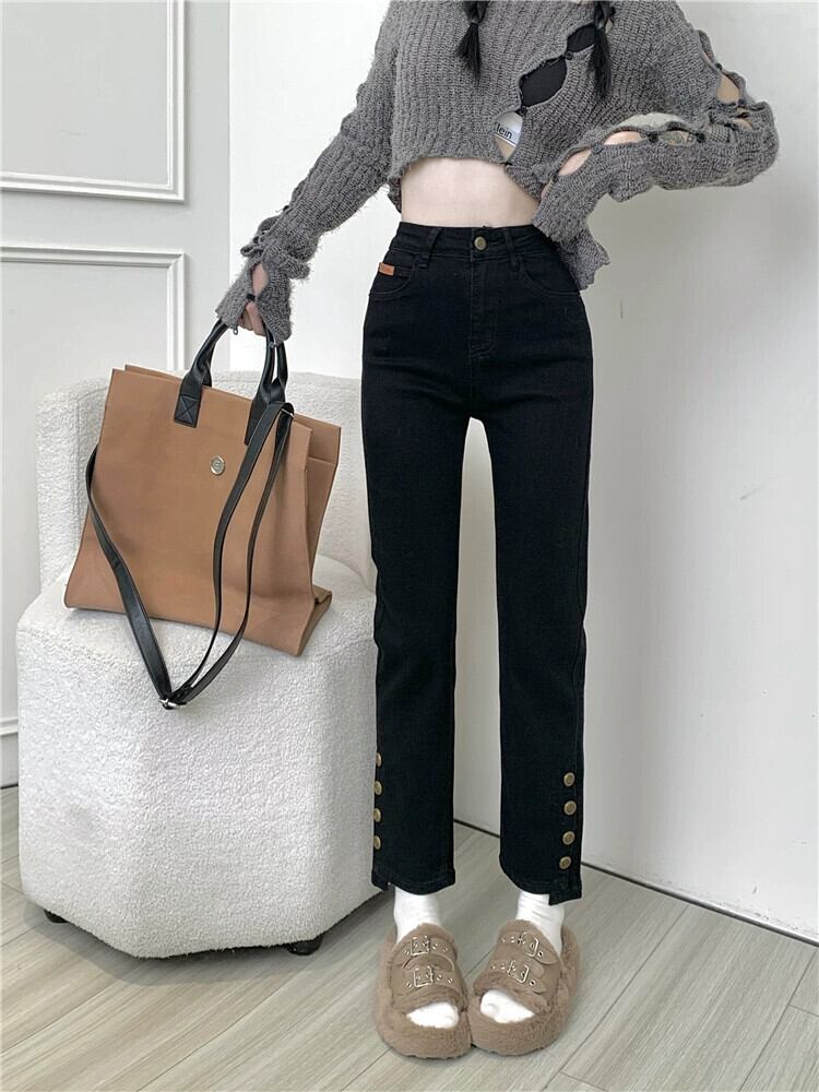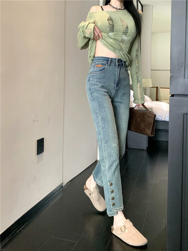 ナインポイントジーンズレディースデザインニッチ2023秋の新スタイルの小さなレトロハイウエストストレートパイプパンツ オータム 秋物 8571669337591987