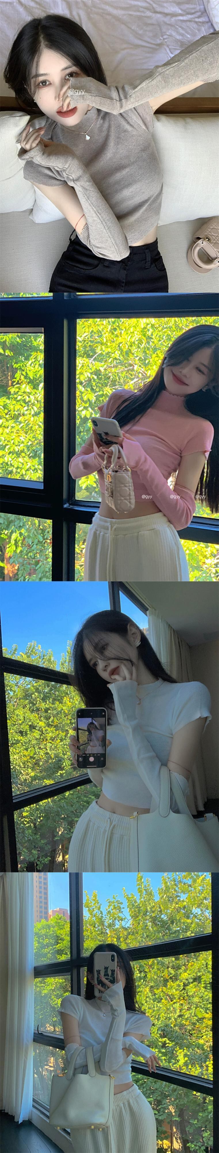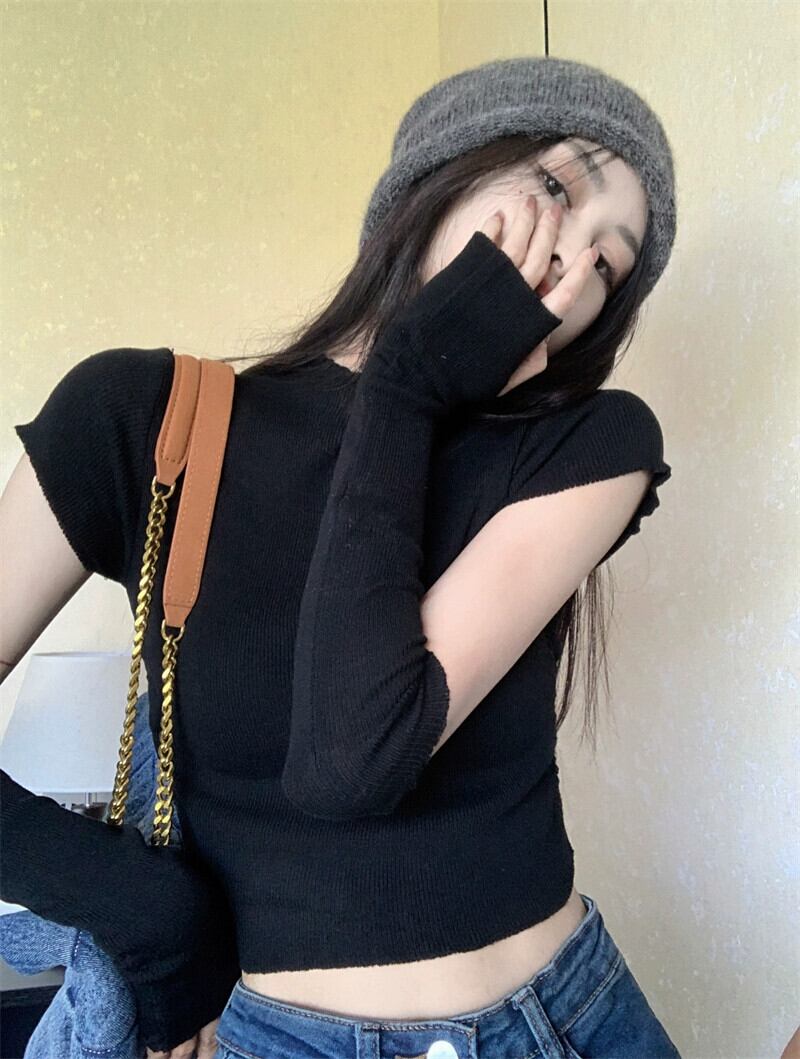 袖ニットセーター女性の 2023 秋の新しい純粋な欲望のユニークでユニークなデザインのセーターショートトップ オータム 秋物 ピュア 8571670761045054