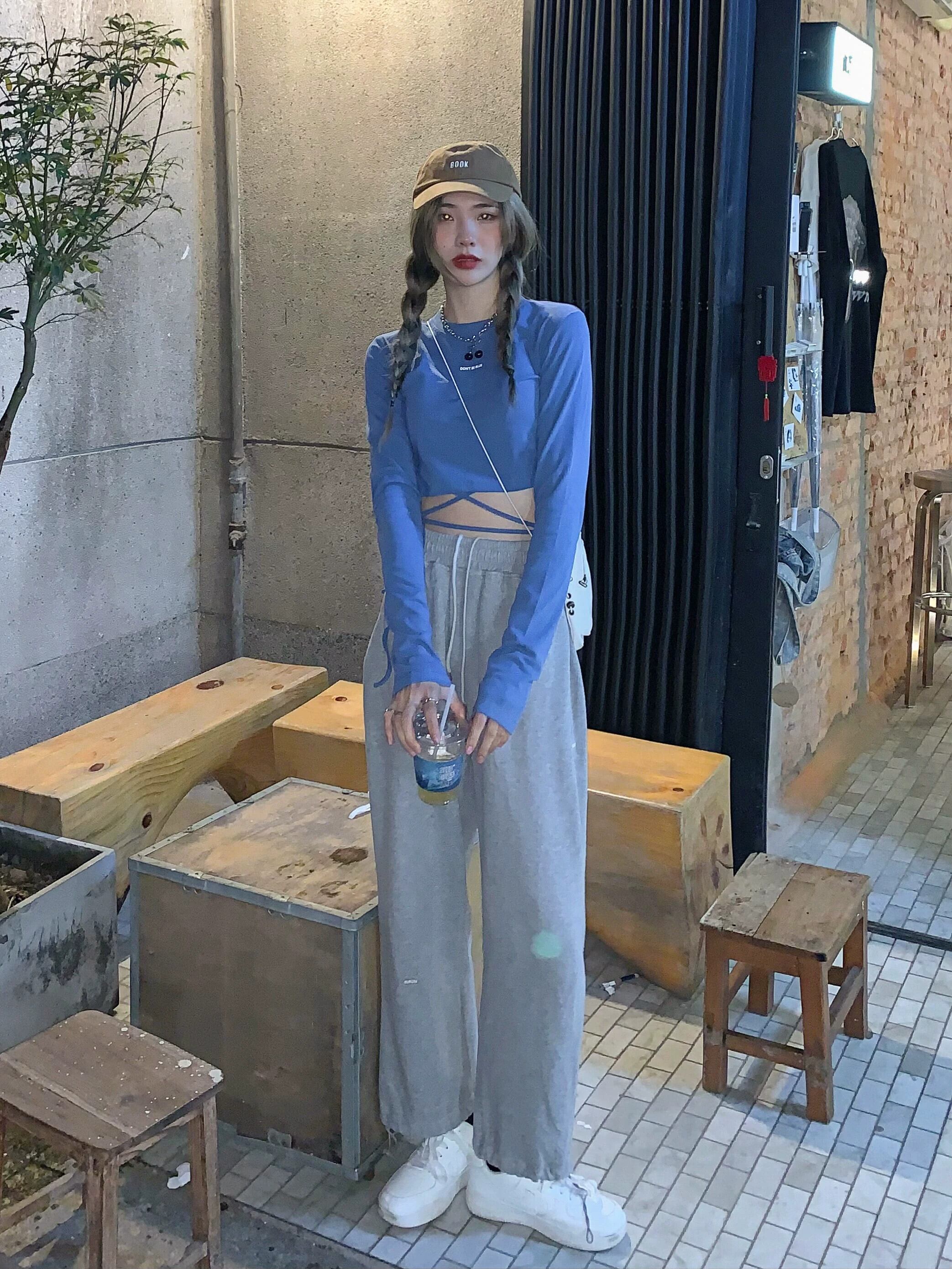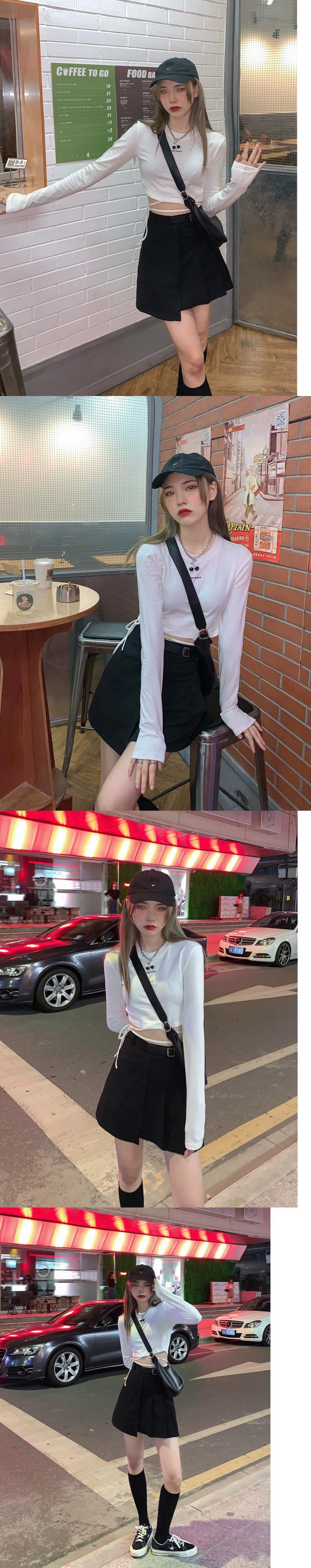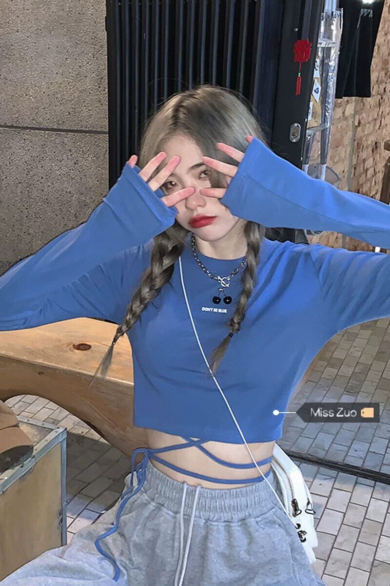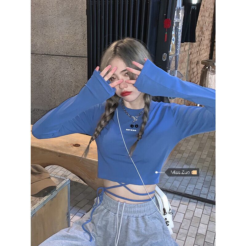 Sweet Hot Girl ショートトップ レディース 秋 2023 アメリカンレトロ スリムフィット ユニークでシックな長袖 Tシャツ ロング 大人ガーリー スウィート キュート カジュアル オータム 秋物 8571678470093636