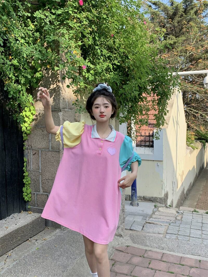 ドーパミンドレス女性の夏 2023 夏スイートと西洋スタイル年齢を減らすパフスリーブ T シャツスカート 大人ガーリー スウィート キュート カジュアル サマー 夏物 Tシャツ 8571693252471929
