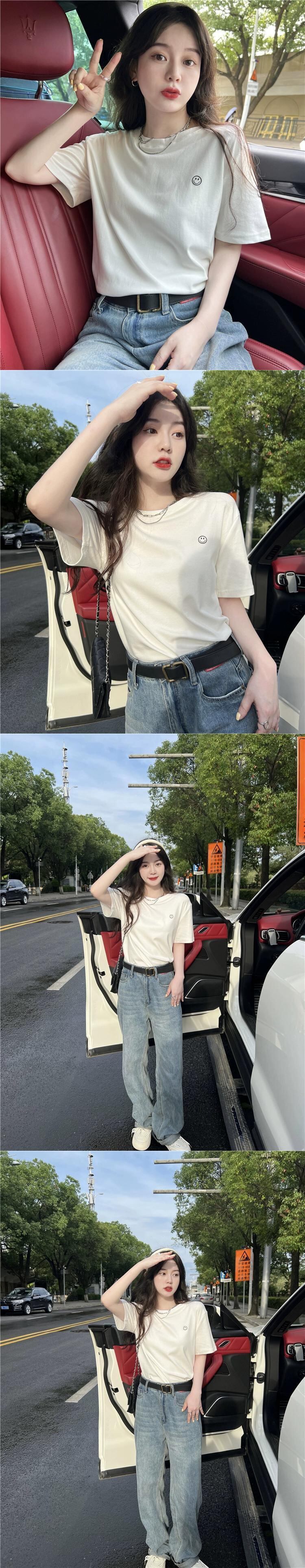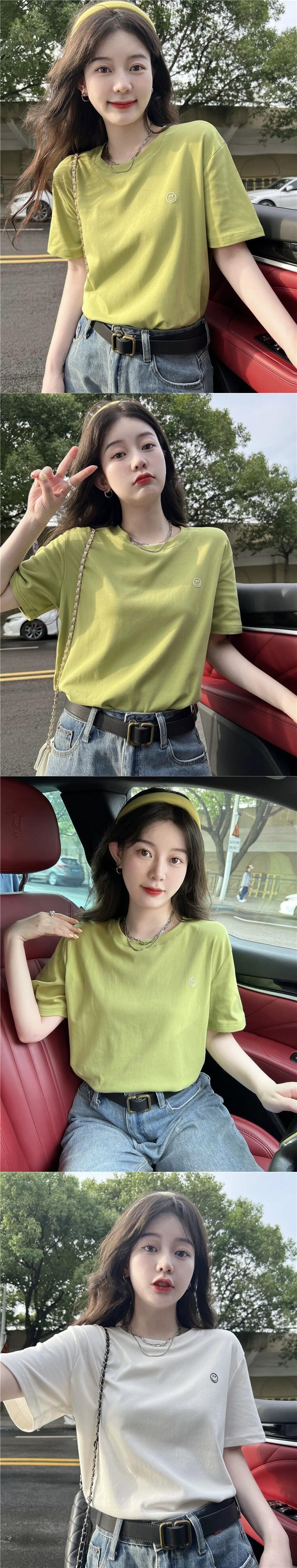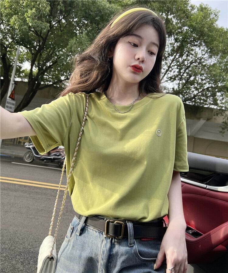 グリーン右肩半袖 Tシャツ女性の夏の 2023 新しいスタイルの小さなシックでシックなユニークな多目的トップ サマー 夏物 8571653803043362