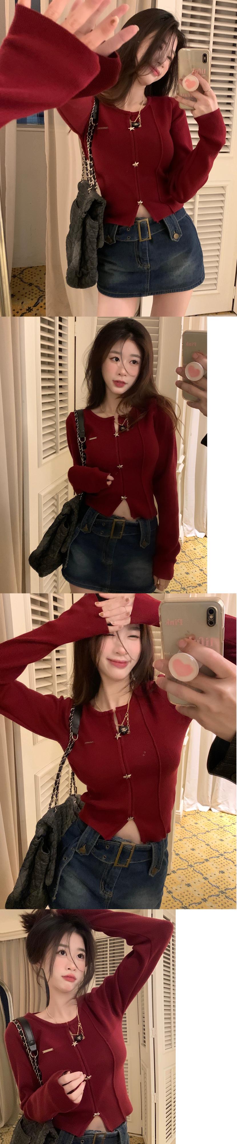 秋と冬の干支年の赤いセーターの女性、ボトムトップデザイン、ニッチスリムショートセーター レッド オータム 秋物 ウィンター 冬物 8571650319419730