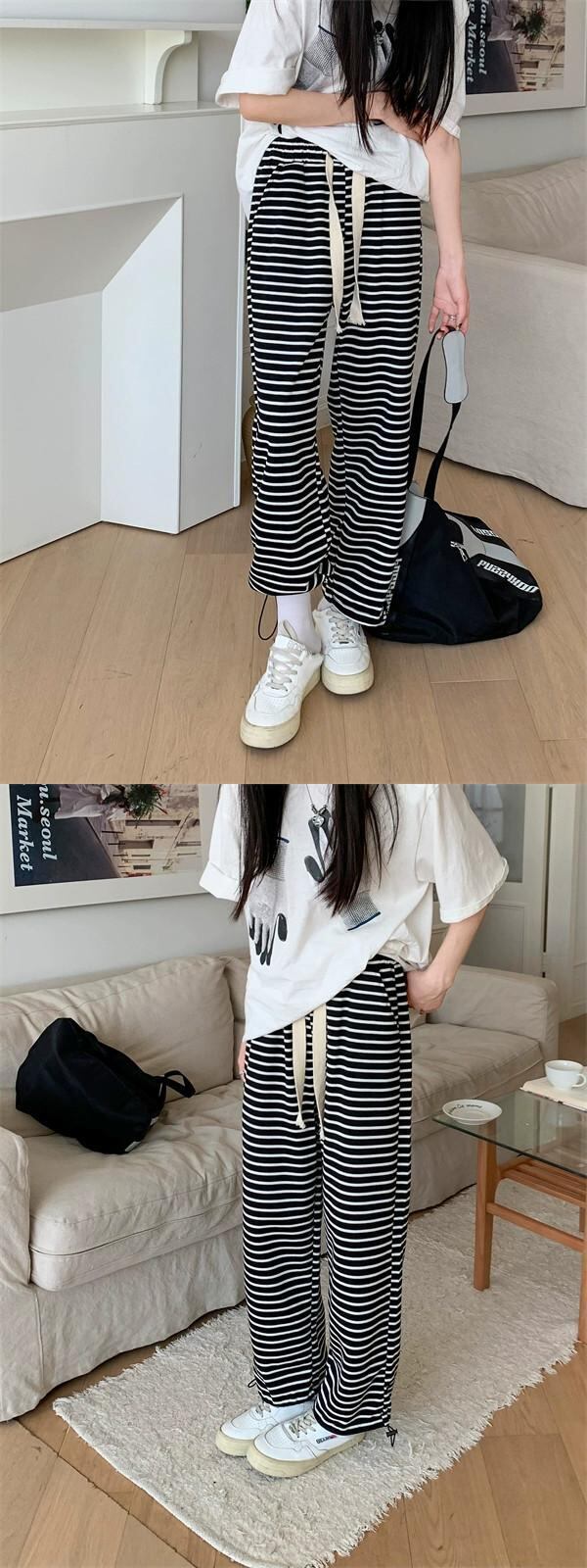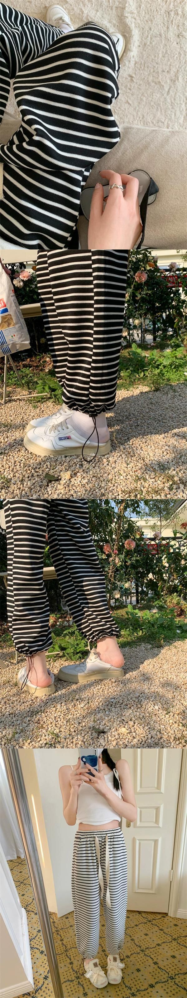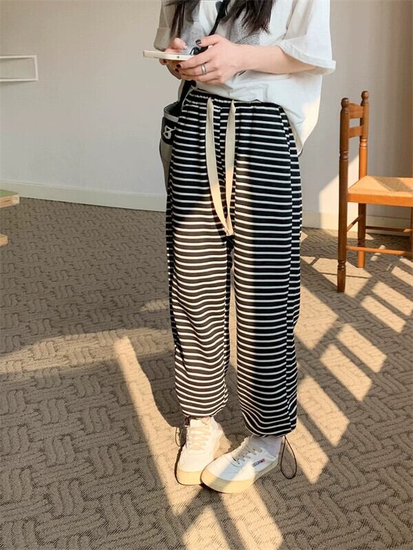 ストライプスウェットパンツレギンス女性2023夏新作人気ストレートスウェットパンツ小柄パンツカジュアルで多用途 サマー 夏物 8571696341406817