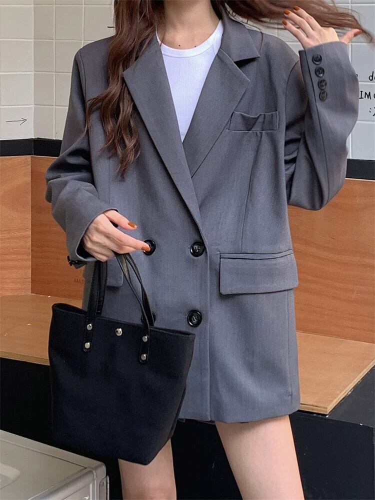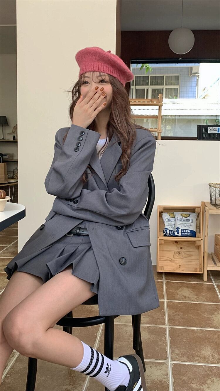 グレーブレザーレディースデザインニッチ2023秋新しい高品質ミドル丈スーツ小柄な人 オータム 秋物 8571620992438626