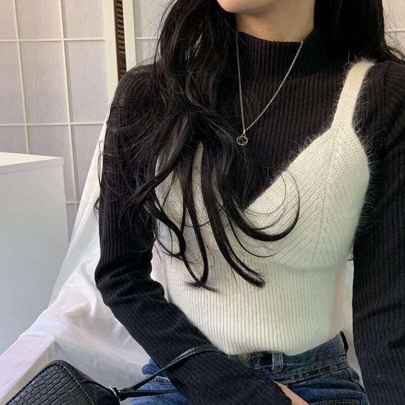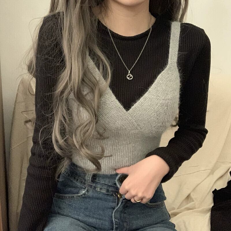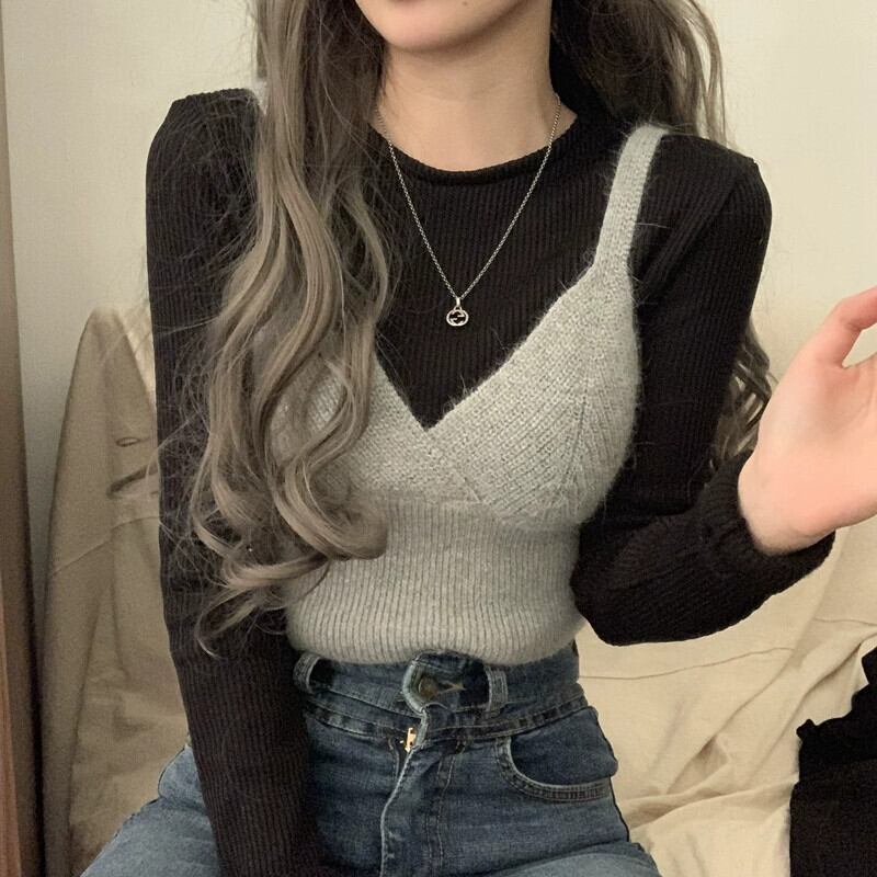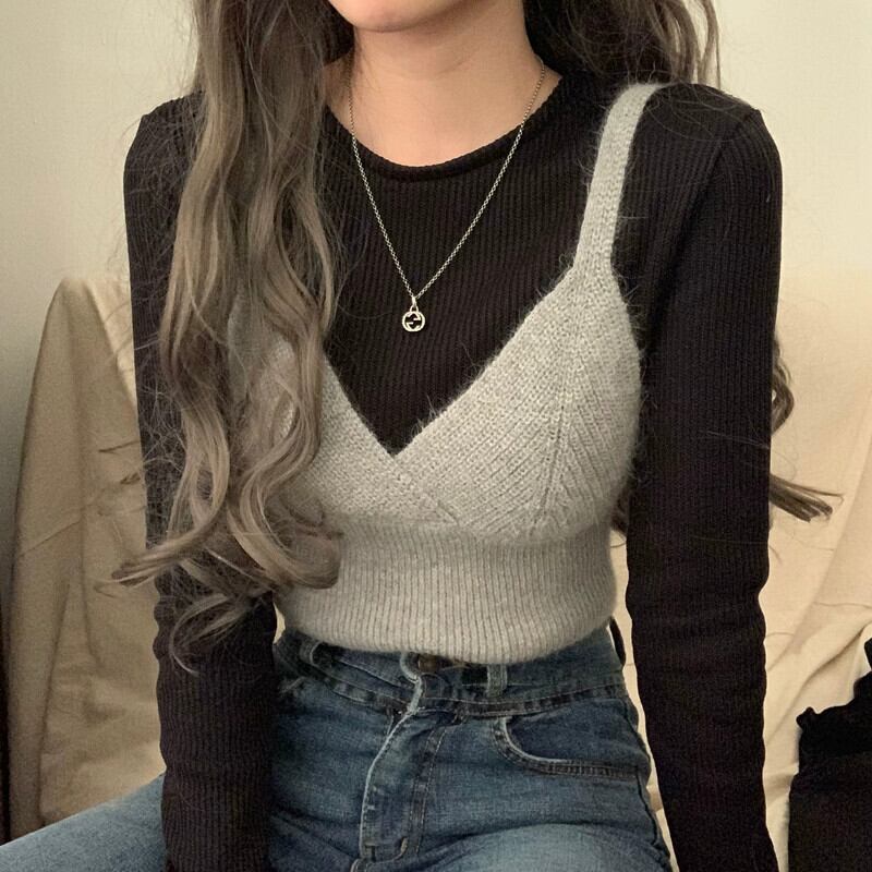 ニットサスペンダーベスト女性秋アウターレイヤリングベスト 2023 新しいインターネットセレブショートセーターベストトップ オータム 秋物 8571662487815569