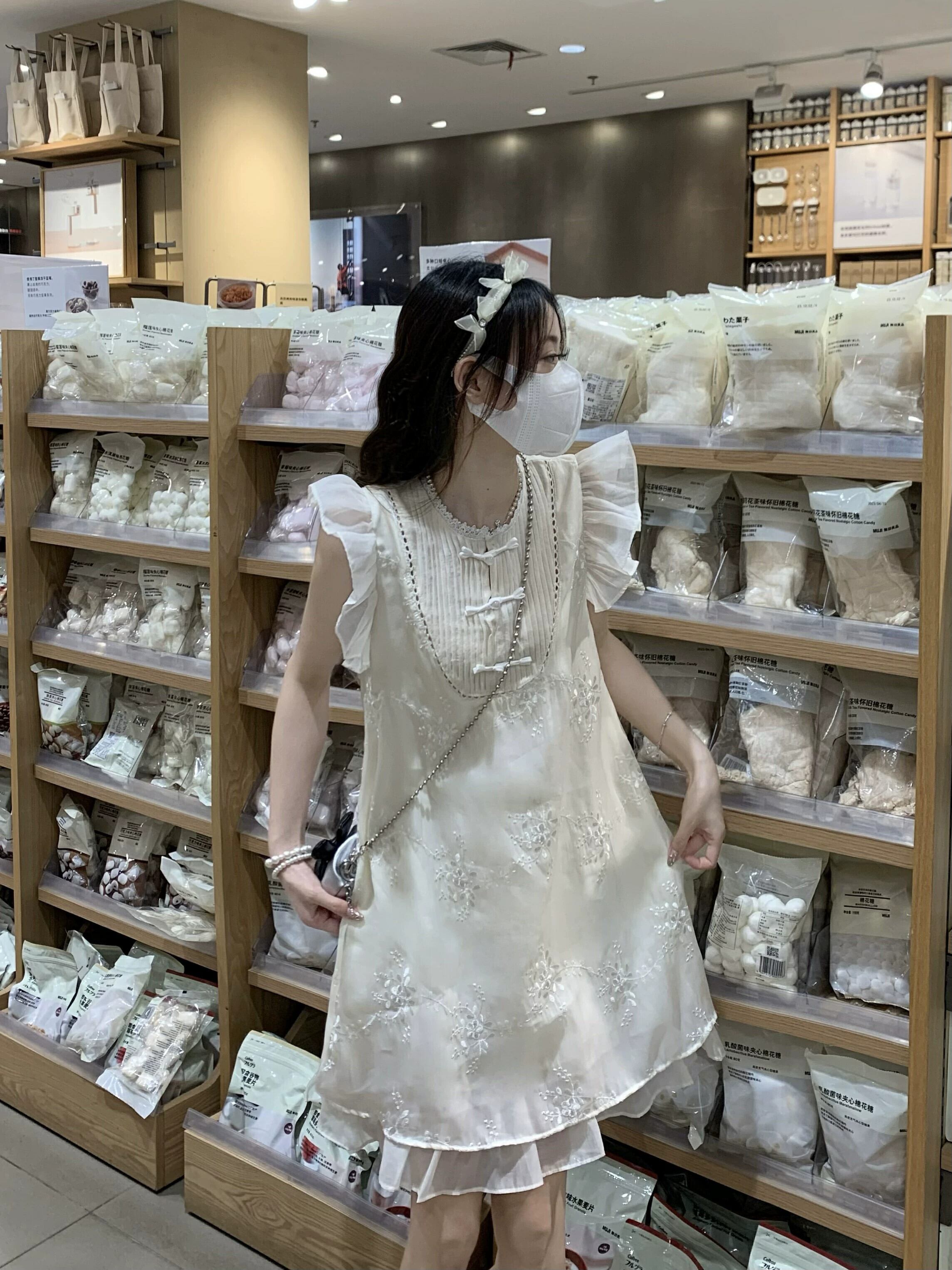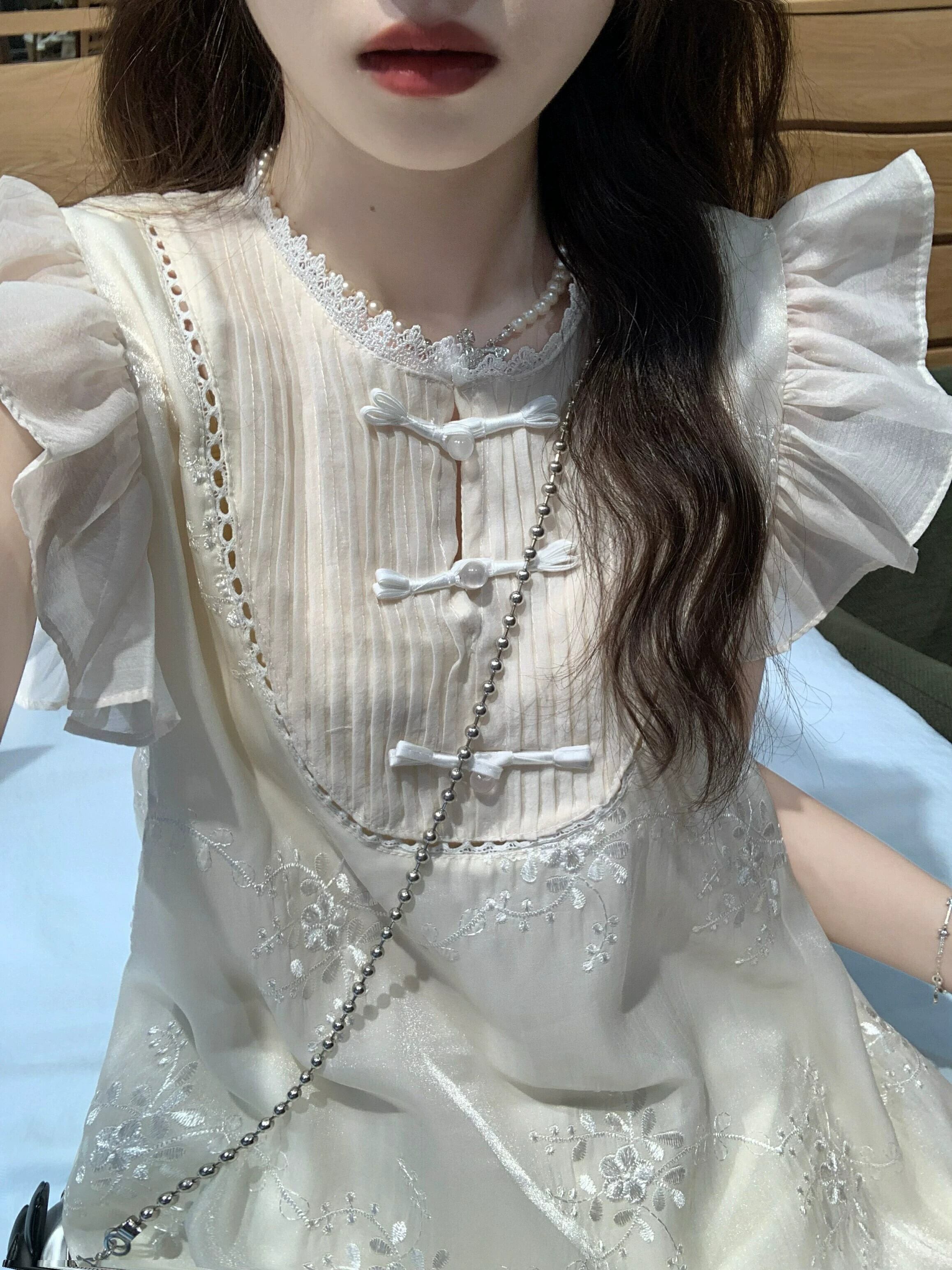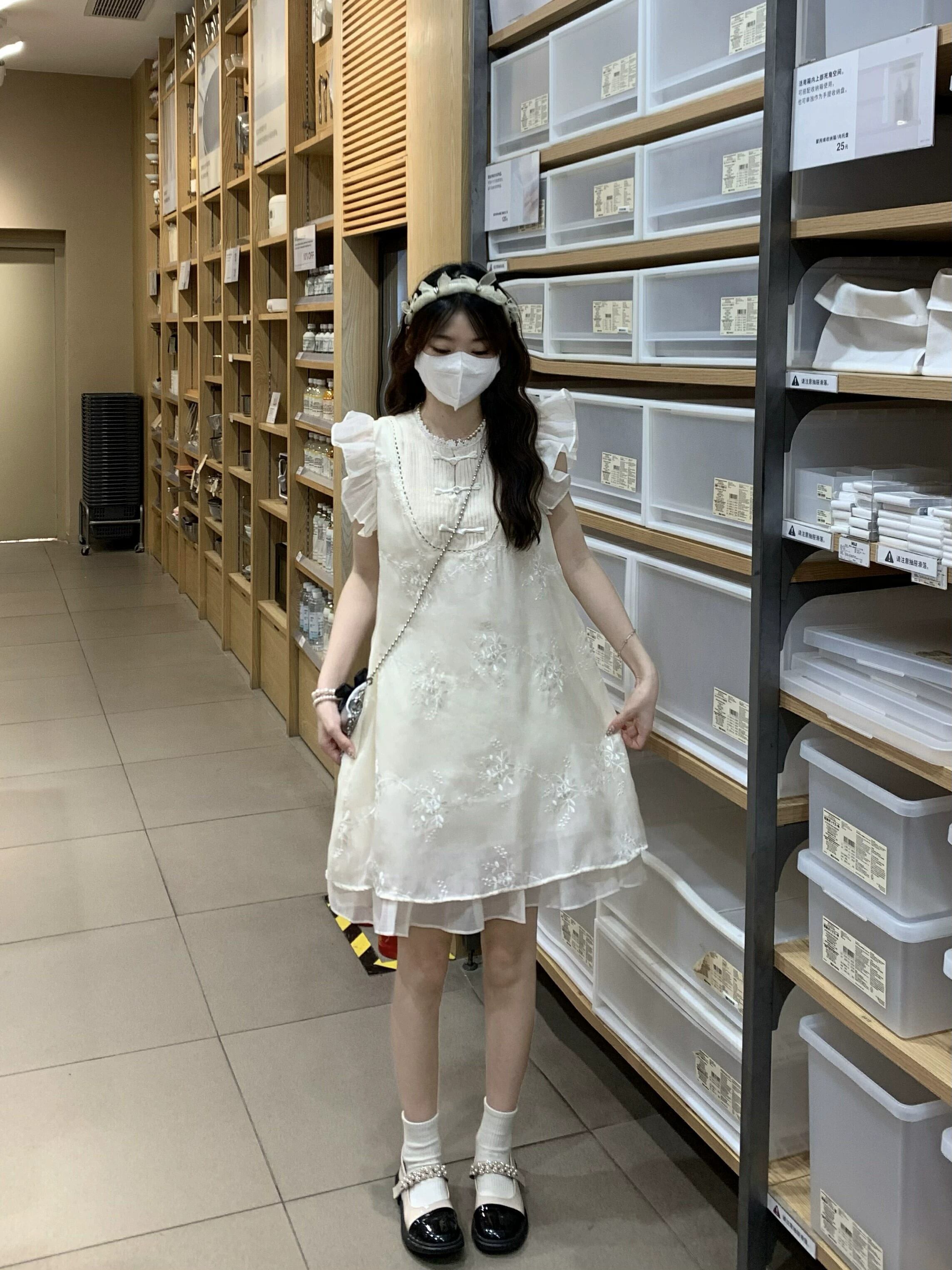 中国風の小さなフライングスリーブドレスの女性の夏の優しい初恋小さなスーパー妖精刺繍プレートボタンスカート レッド サマー 夏物 8571694734161369