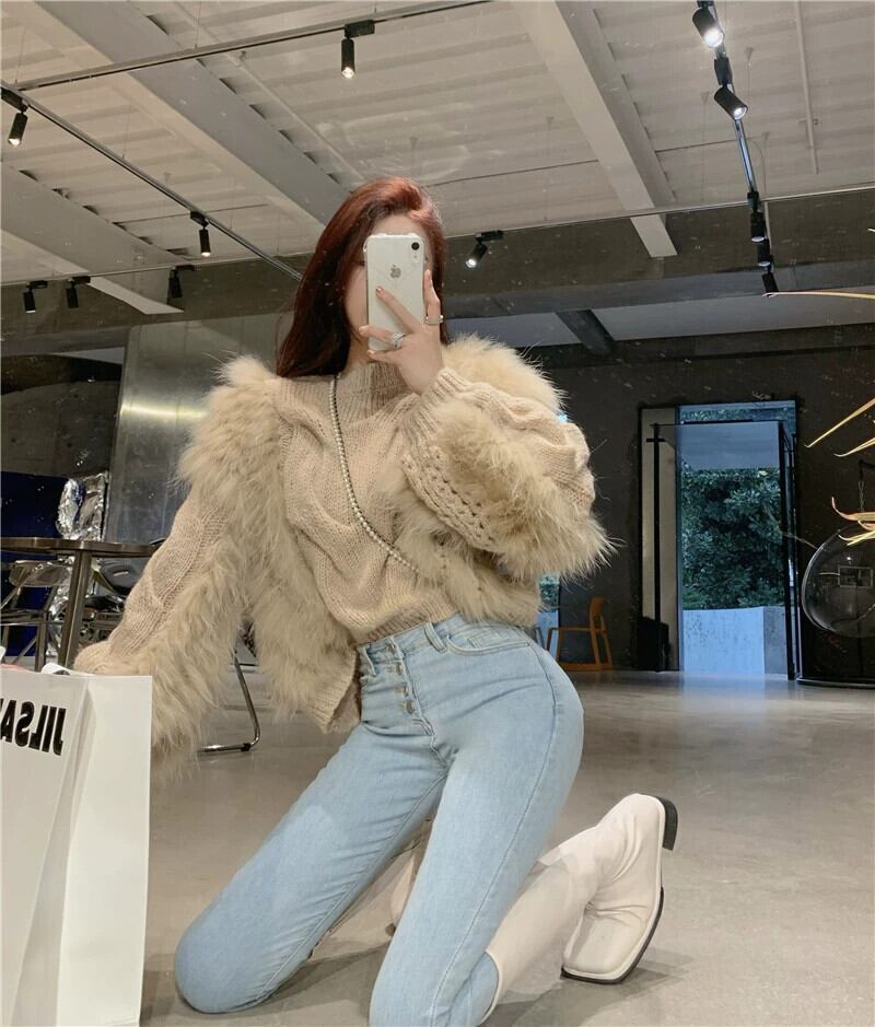 色:カーキ色のセーター