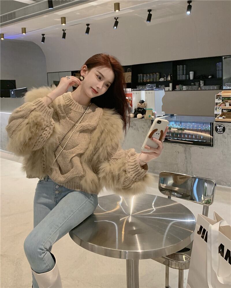 カーキプルオーバーセーター女性の怠惰なハイエンド春 2023 新デザインニッチニットセータートップ スプリング 春物 8571658097537121